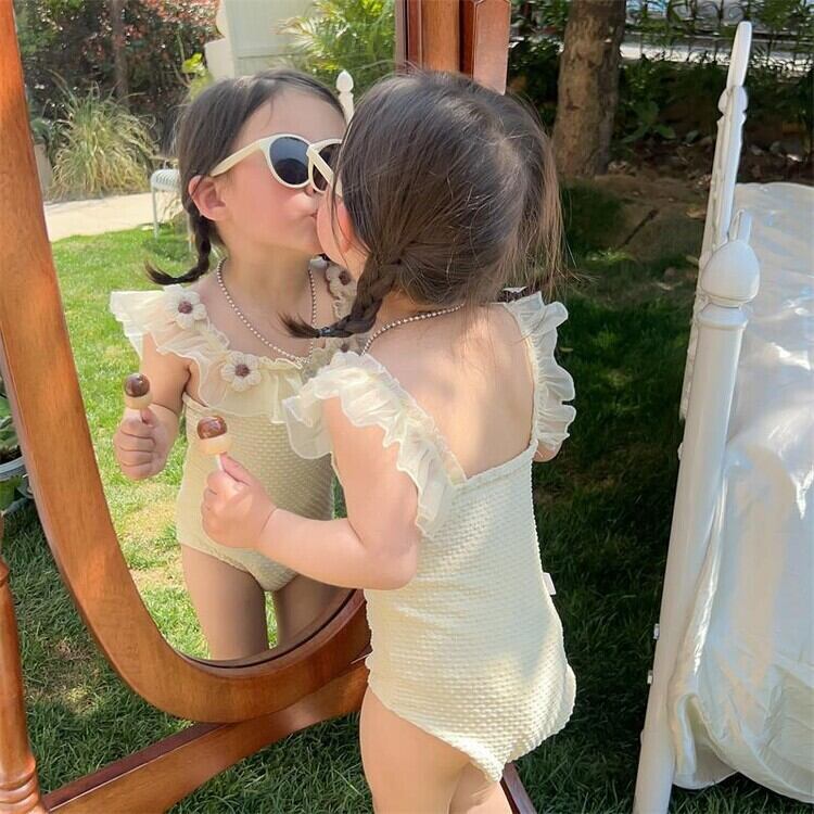 kids | 子供服 赤ちゃん服 水着 ワンピース ショルダーフリル 花 リゾート バックレス リゾート 海