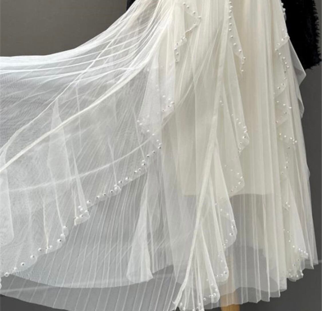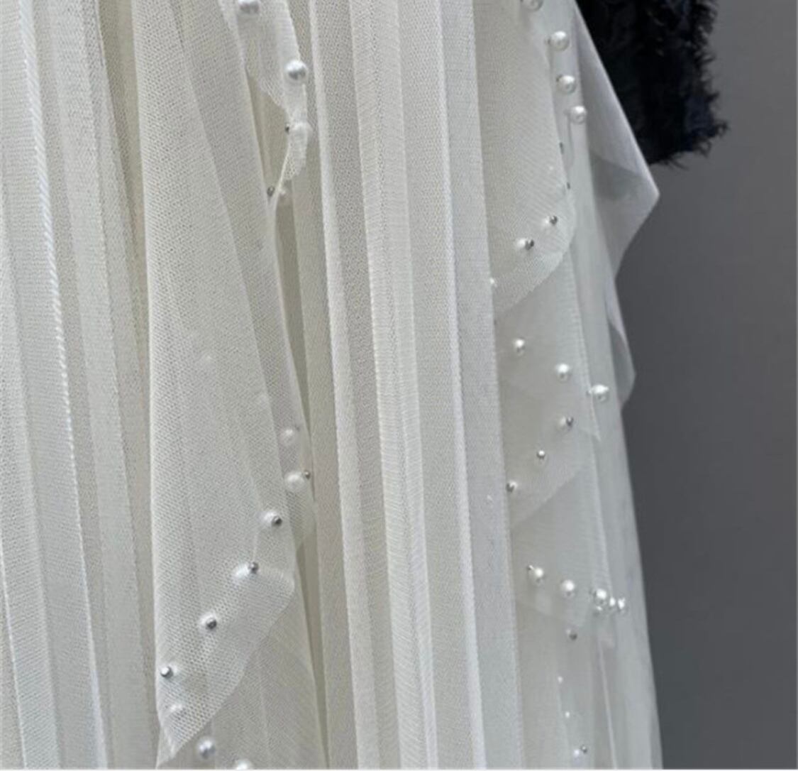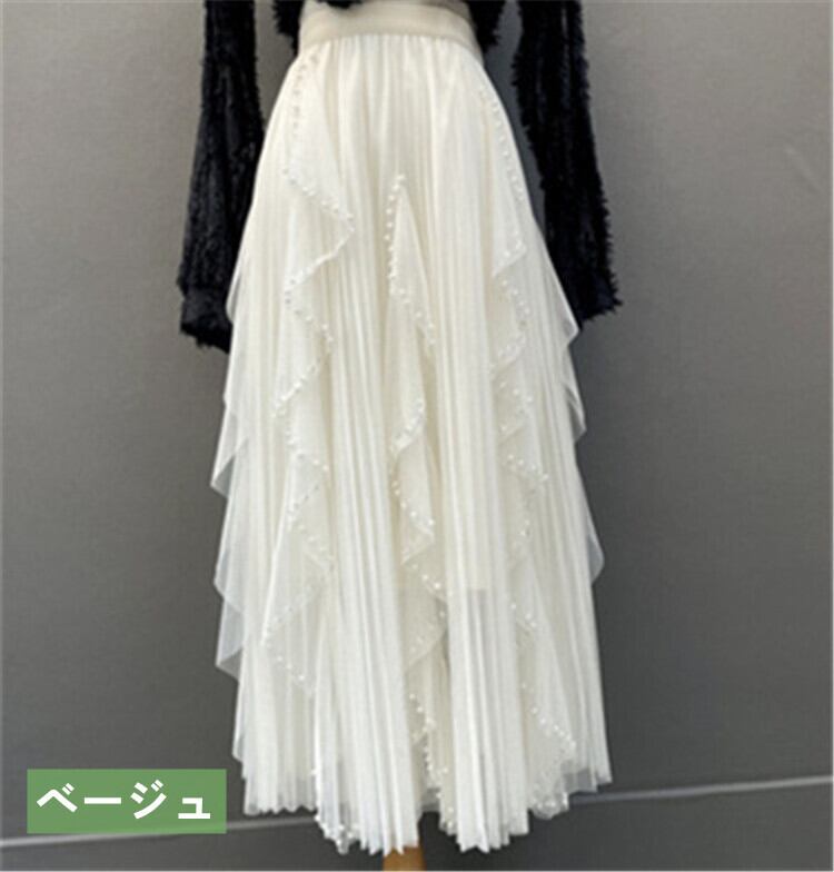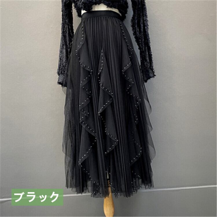 skirt | スカート チュール パール 透け感 フリルスカート ミモレ丈 INSスタイル トレンド フレアスカート