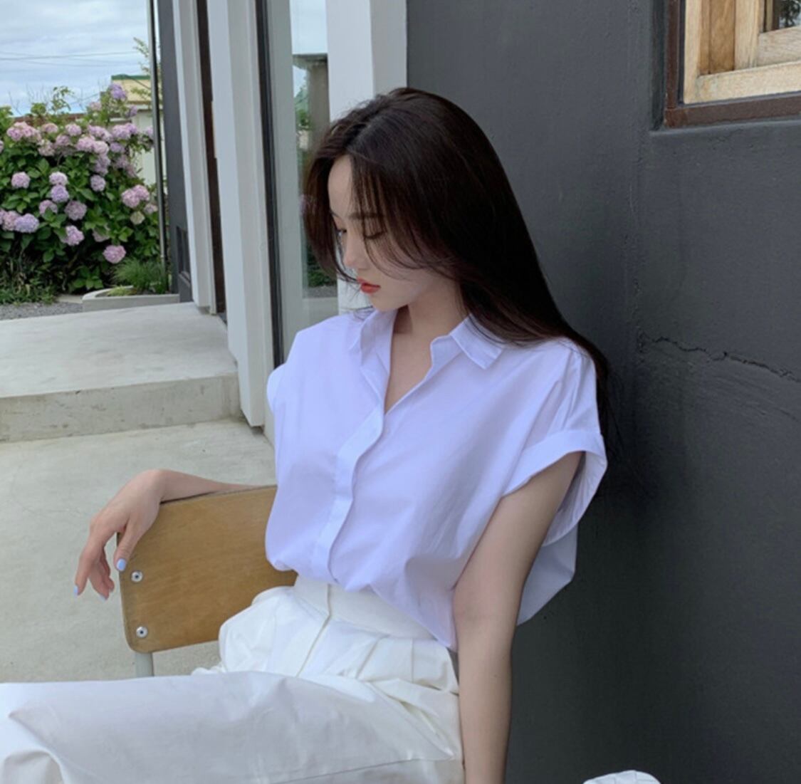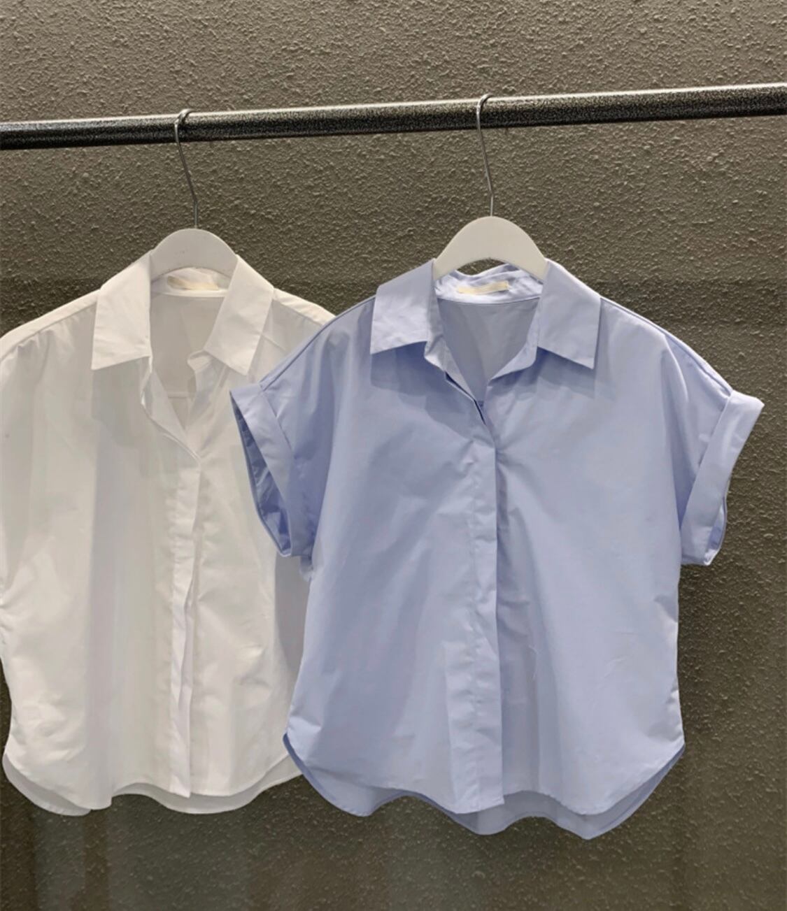 tops| トップス シャツ ブラウス フレンチスリーブ 無地 シングルブレスト レディース こなれ感 コットン