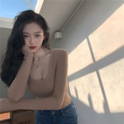 繊細なUネックデザインが魅力的なセクシーリブニット。韓国ファッションのトレンドを取り入れたデザインで、スリムなシルエットが女性らしい魅力を引き立てます。柔らかな素材で体にフィットし、着心地も抜群です。ボトムスを選ばないシンプルな万能アイテム◎