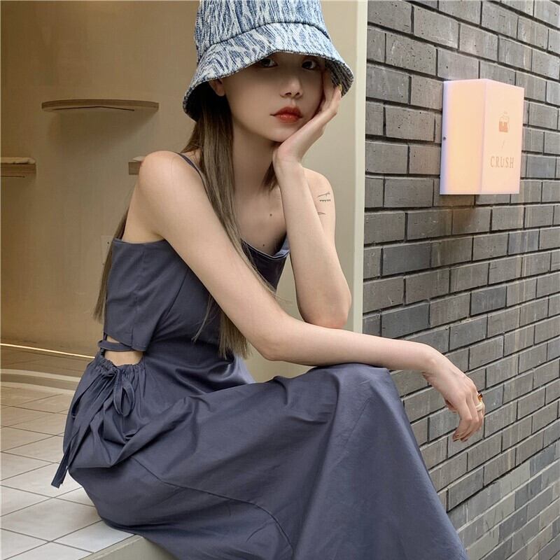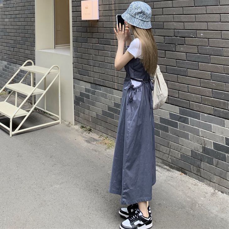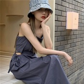 onepiece | ワンピース ノースリーブ サイドカット キャミソール ロング丈 レイヤード 重ね着 韓国ファッション CHIC カジュアル ヘルシー