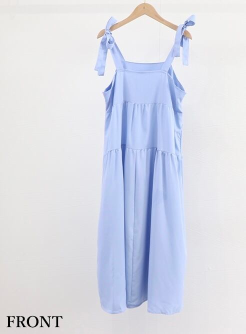 onepiece | ワンピース キャミソール ショルダーリボン フレアワンピース ロング丈 韓国ファッション フェミニン