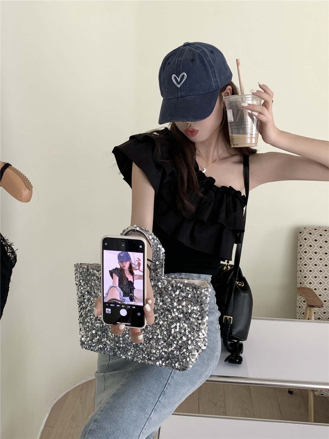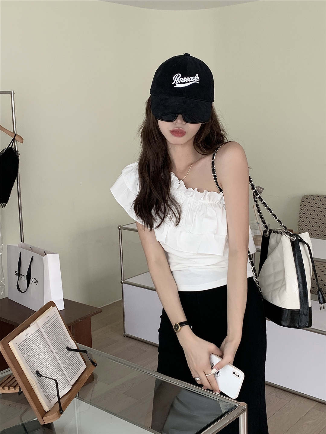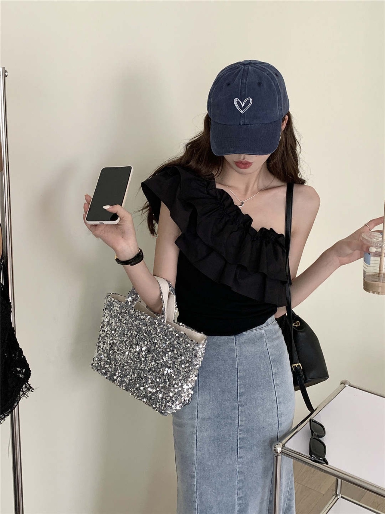tops | トップス ワンショルダー セクシー フリルディティール INSスタイル 韓国ファッション ショルダーフリル