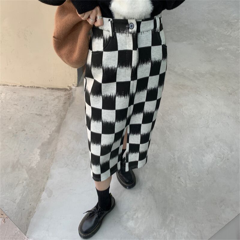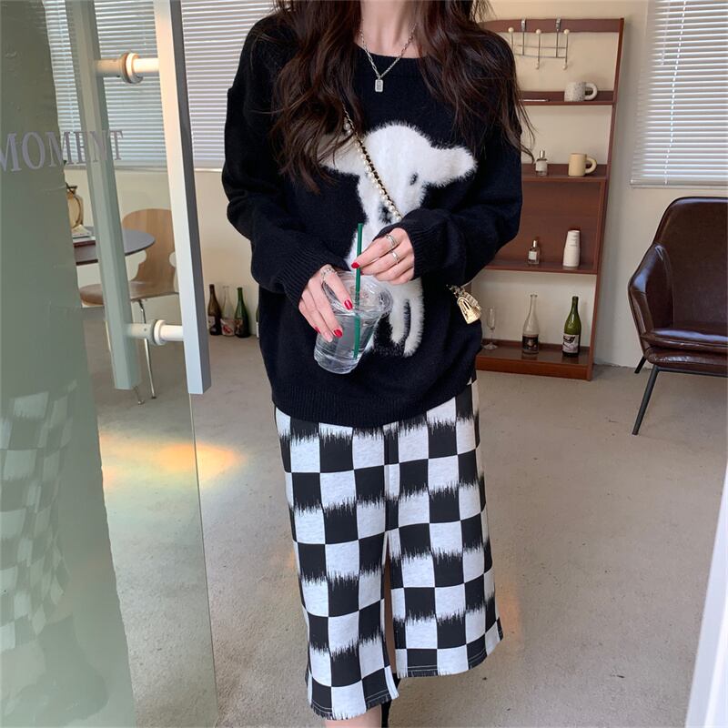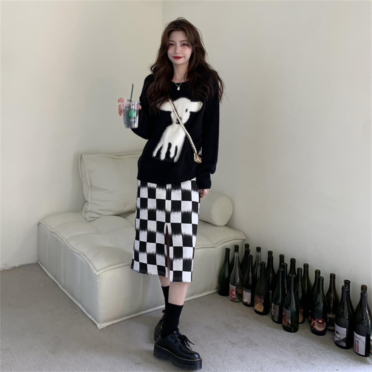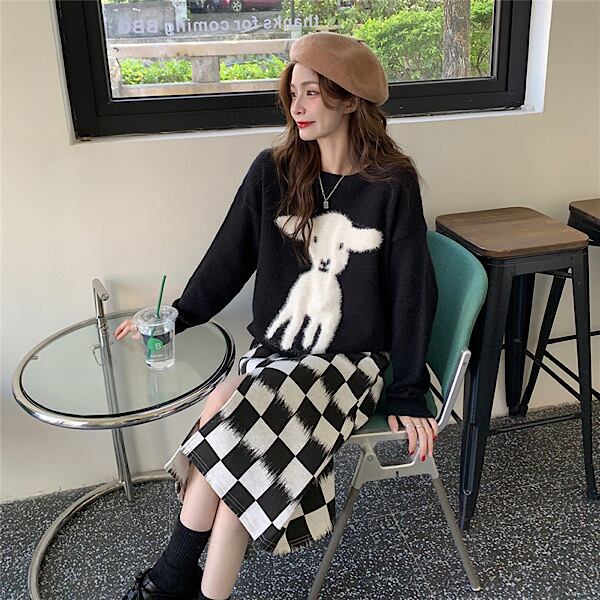 set up | セットアップ ニット 羊 チェック ミモレ丈スカート プルオーバー セーター INSスタイル
