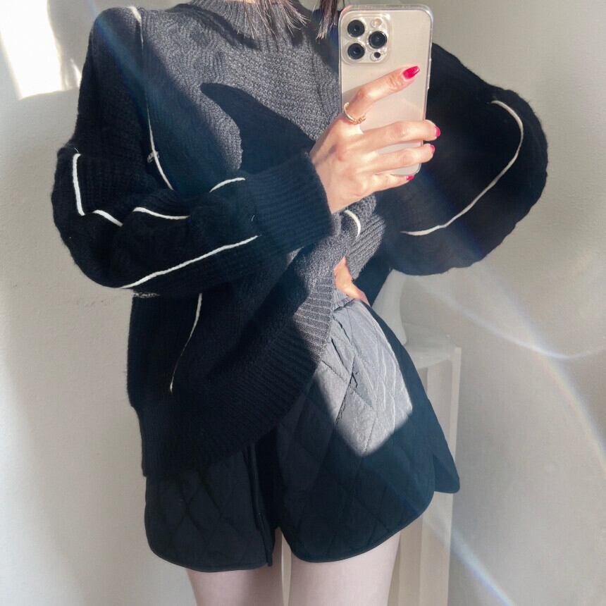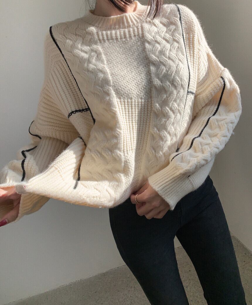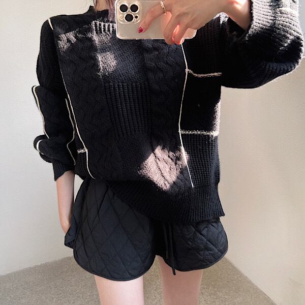 knit | ニット トップス プルオーバー ケーブル 長袖 パッチワーク カジュアル 韓国