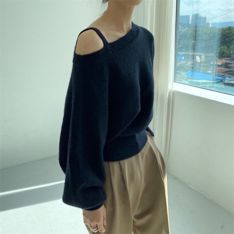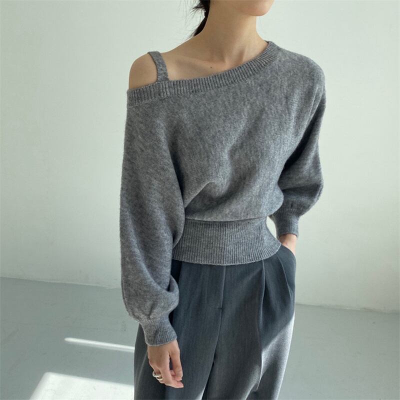 knit | ニット ルーズ 長袖 ワンショルダー 体型カバー 着痩せ トップス INSスタイル 韓国 モダン