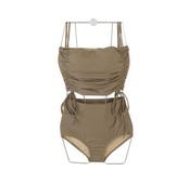 大人の女性にぴったりなベージュのセパレート水着。ベーシックなカラーでありながら、シンプルで洗練されたデザインが魅力です。胸元はボリューム感があるので、華やかな印象を与えてくれます。