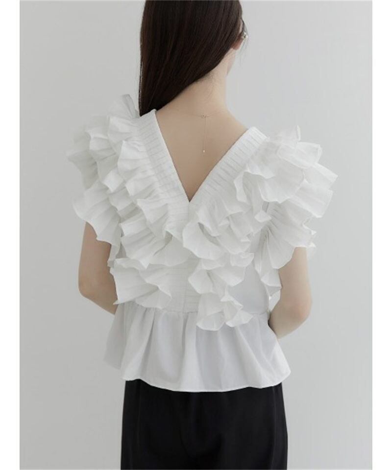 tops | トップス ボリュームスリーブ ノースリーブ CHIC フリルディティール Vカット ブラウス 韓国 フレンチスリーブ