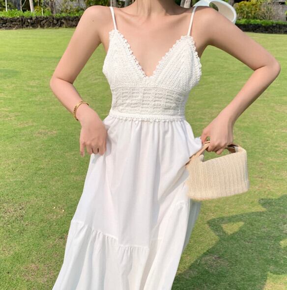 Beachwear | ワンピース リゾート サマードレス 海 ウエスト切替 バックリボン 韓国 Vカット