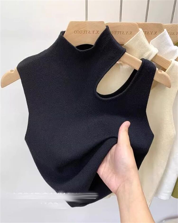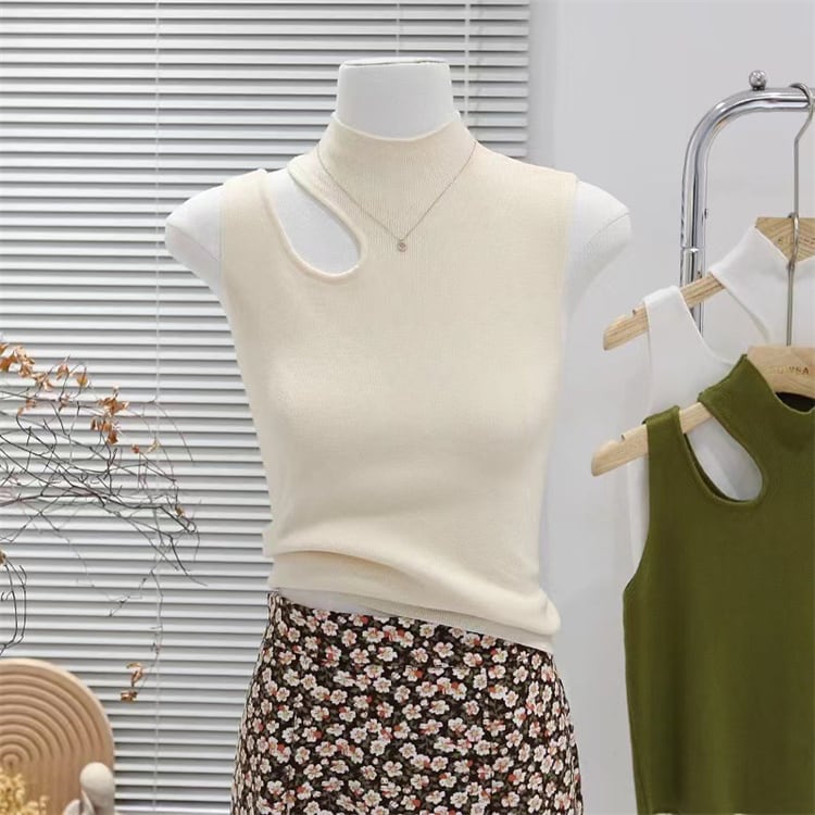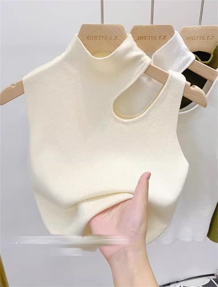 tops | トップス ノースリーブ CHIC ハイネック タンクトップ ユニーク 韓国 オープンカット