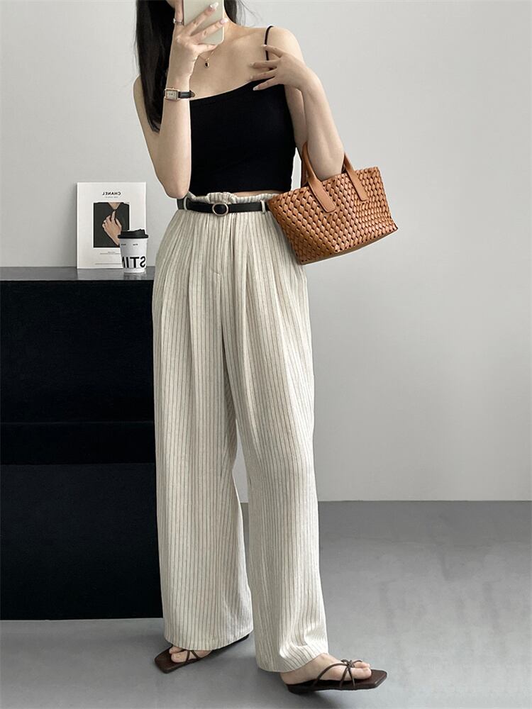 pants | ボトムス ワイドパンツ ゆったり ストライプ コットン ロングパンツ ルーズ