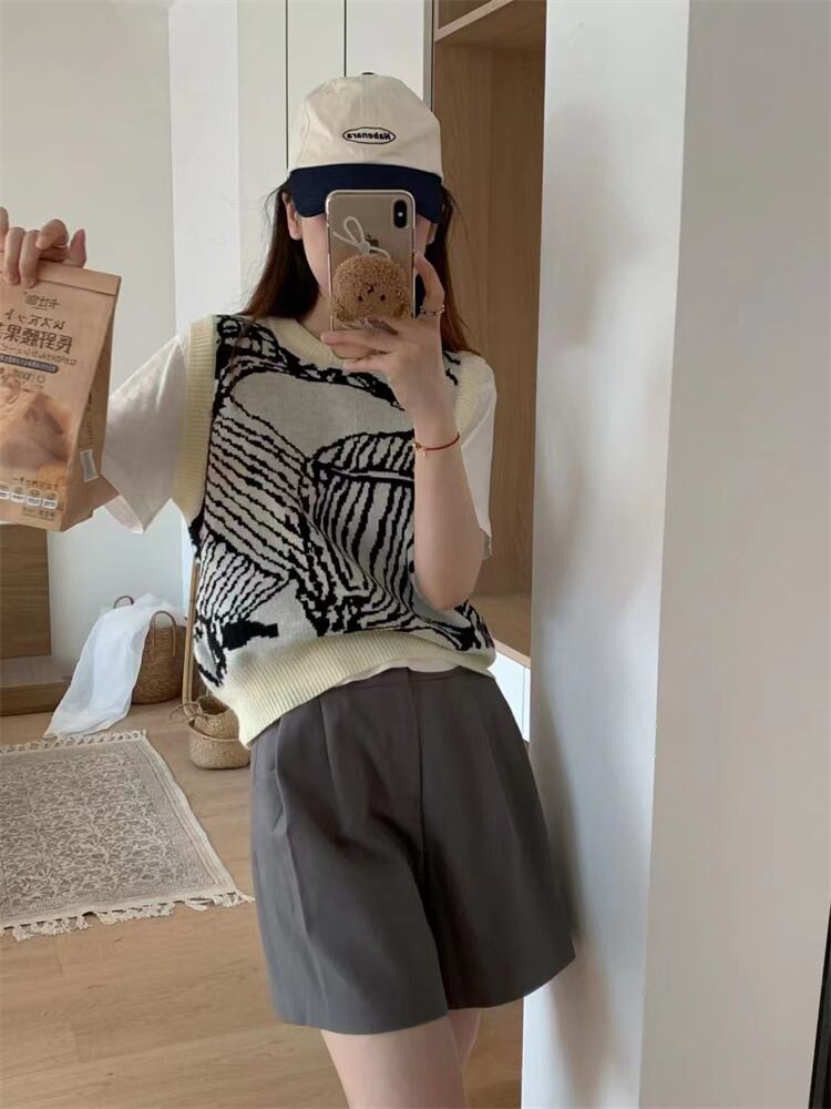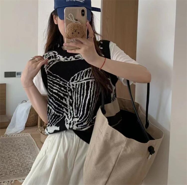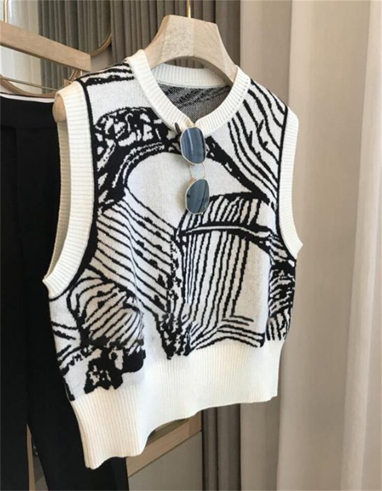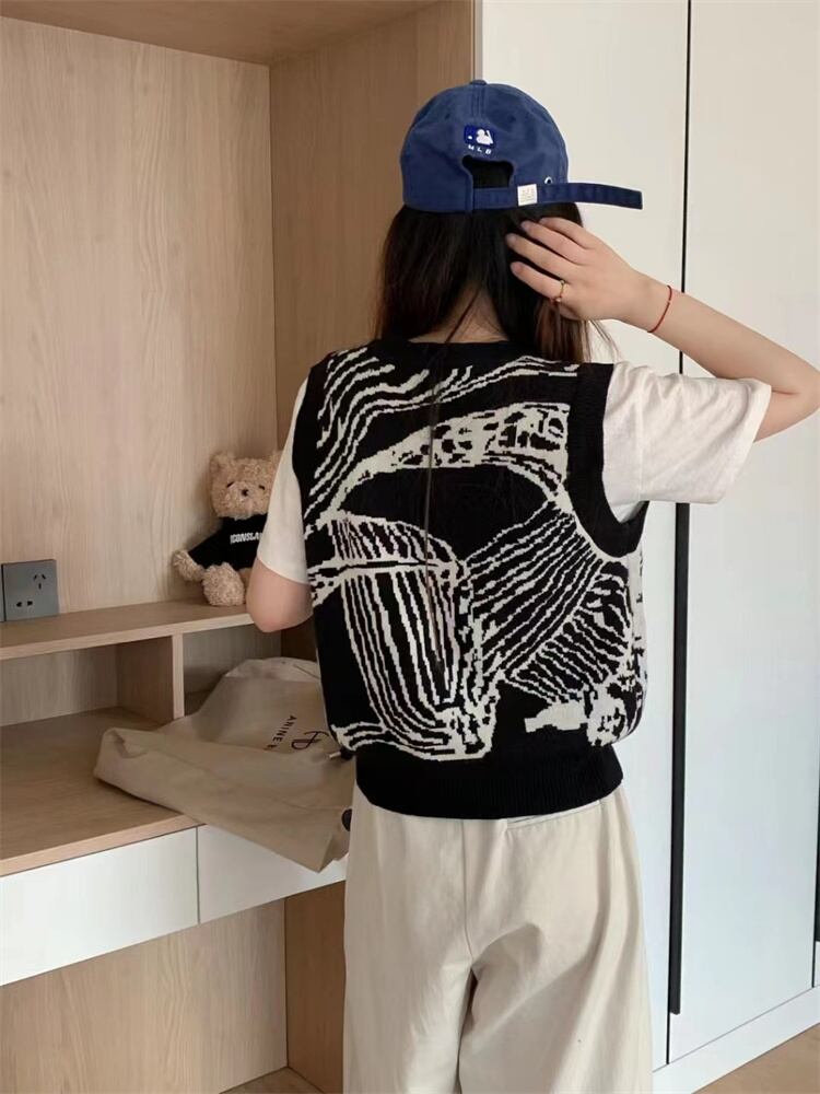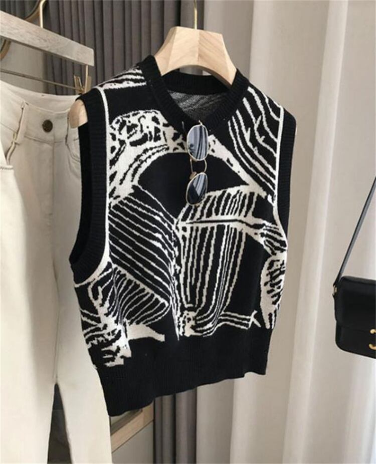 tops | トップス ノースリーブ CHIC ジャガード タンクトップ ユニーク 韓国 ベスト 重ね着 レイヤード