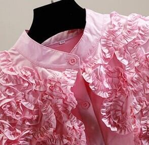 tops | トップス ブラウス ノーカラーシャツ フレンチスリーブ 上品 ユニーク フラワーモチーフ コットン