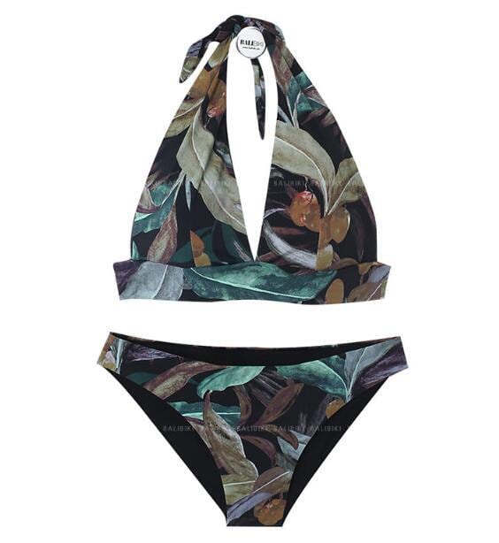 bikini | 水着 セパレート ボタニカル柄 ホルターネック セクシー ユニーク ナイトプール 韓国 リゾート 海