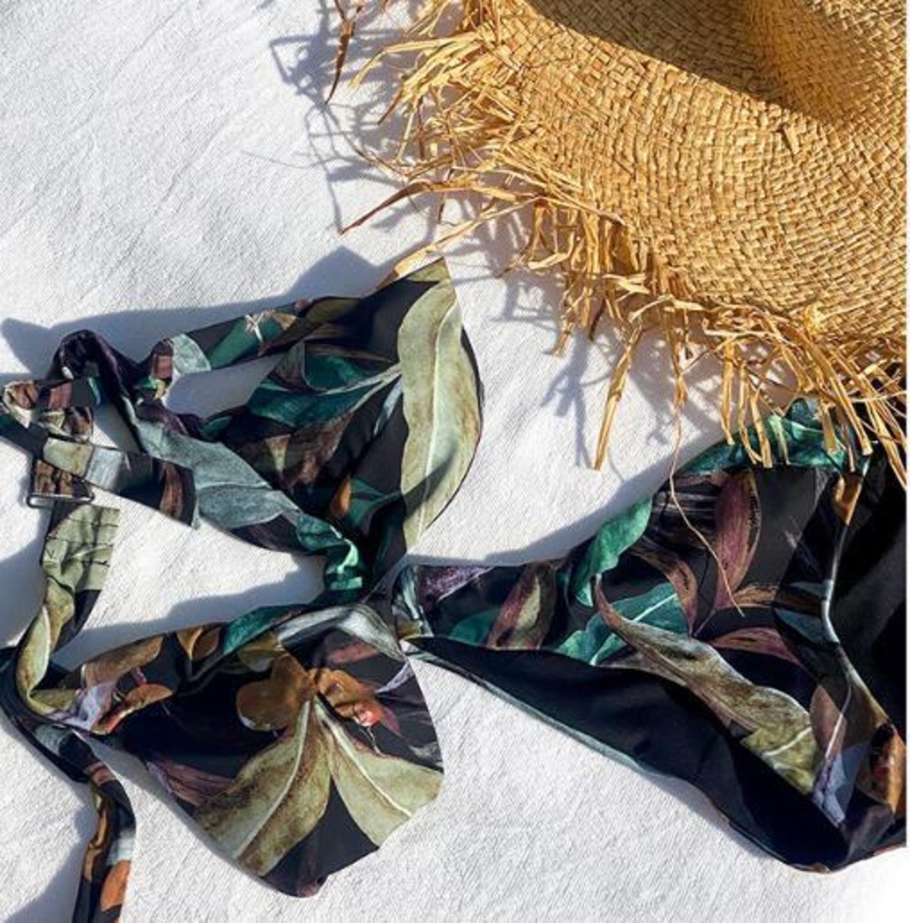 鮮やかなボタニカル柄が目を引くセクシーなセパレート水着。ホルターネックのデザインが胸元を美しく引き立て、リゾートやナイトプールでの華やかな着こなしを叶えます。