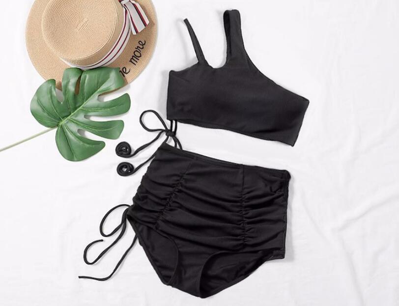 bikini | 水着 セパレート 無地 ハイウエスト ワンショルダー セクシー ユニーク ナイトプール 韓国 リゾート 海
