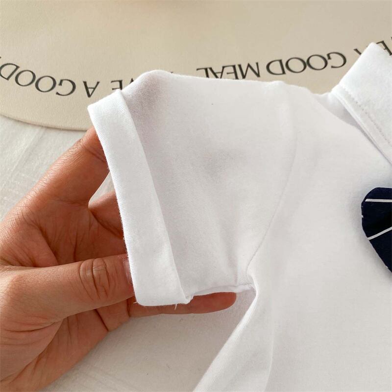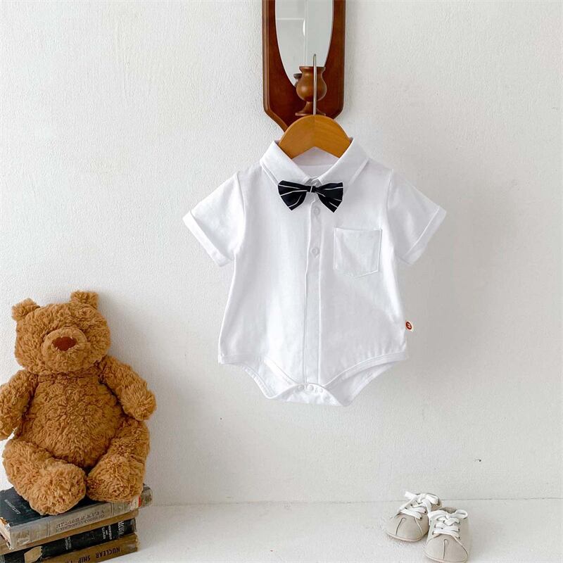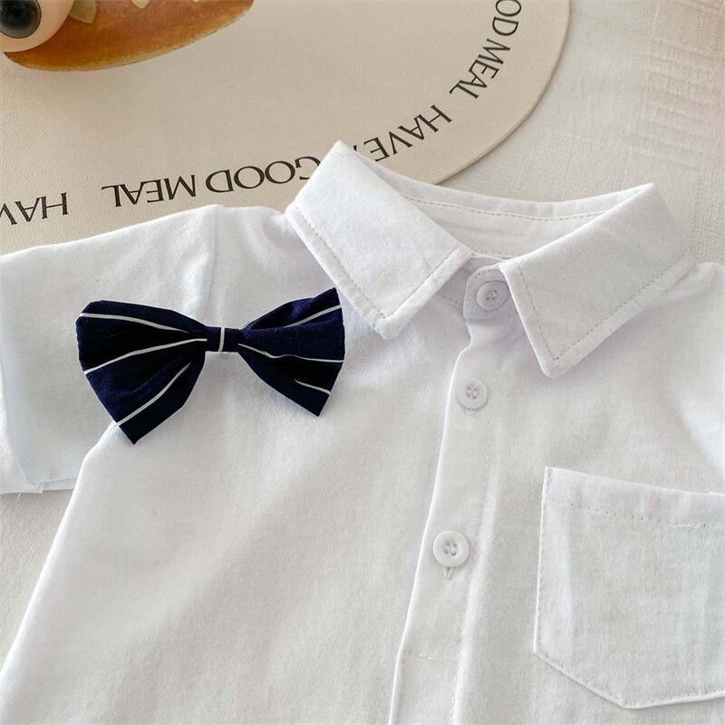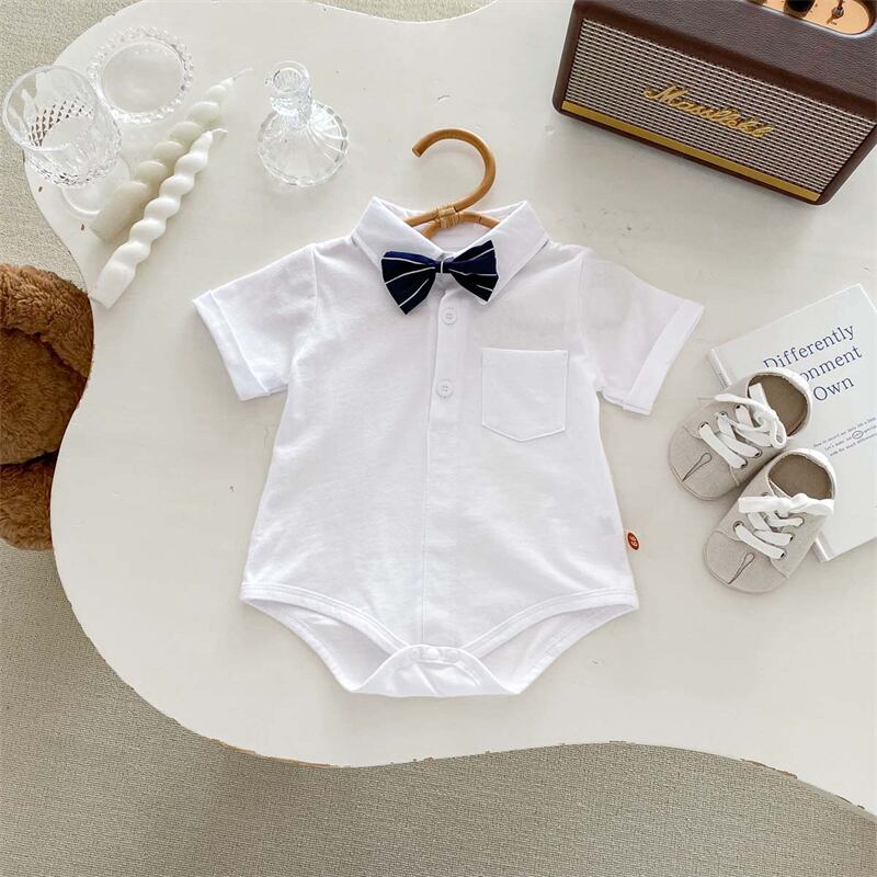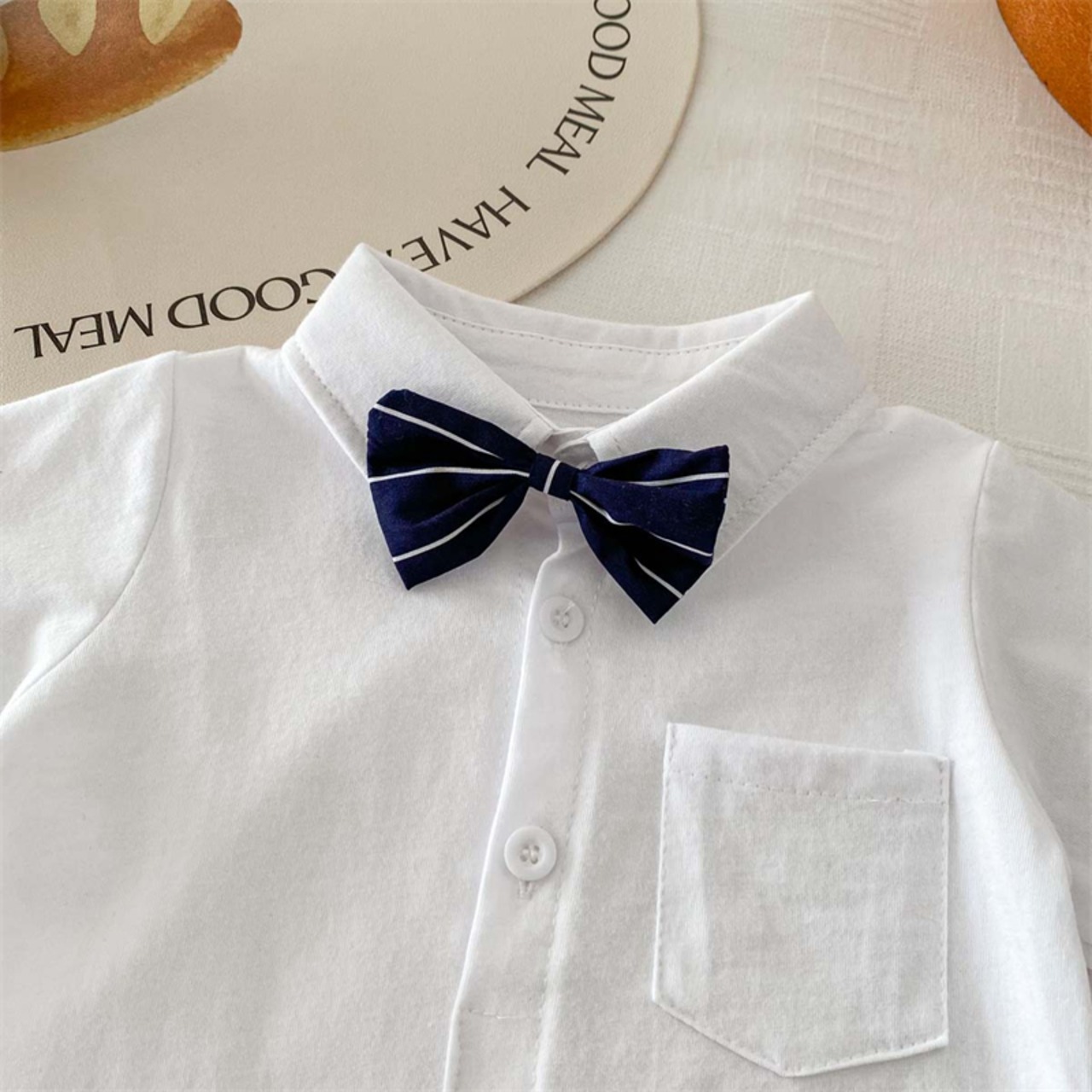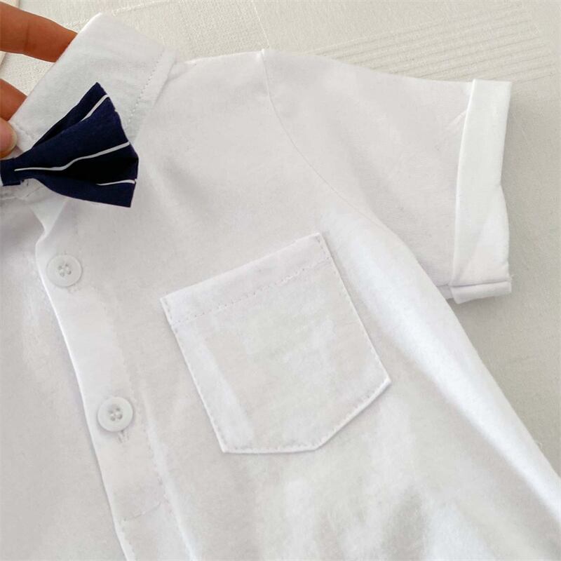 可愛らしいお子様のためのフォーマルウェア。ロンパースに蝶ネクタイのシャツがついたセットは、特別な日やイベントにぴったりです。きちんと感を演出しながらも、動きやすさも考慮したデザインで、お子様も快適に過ごせます。