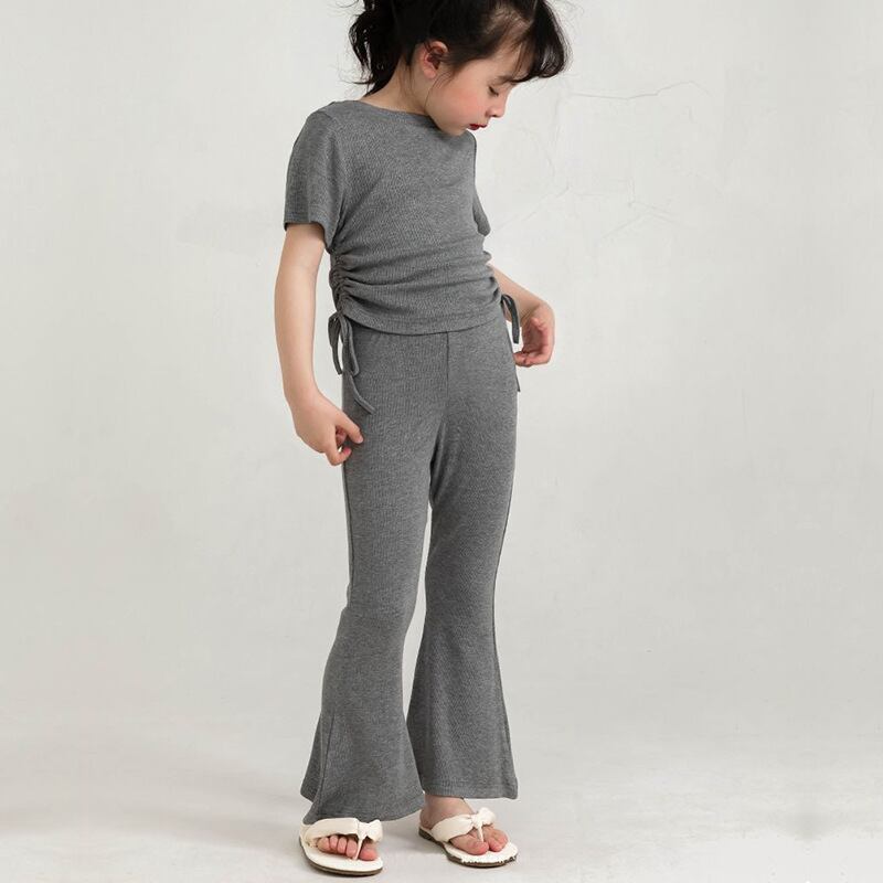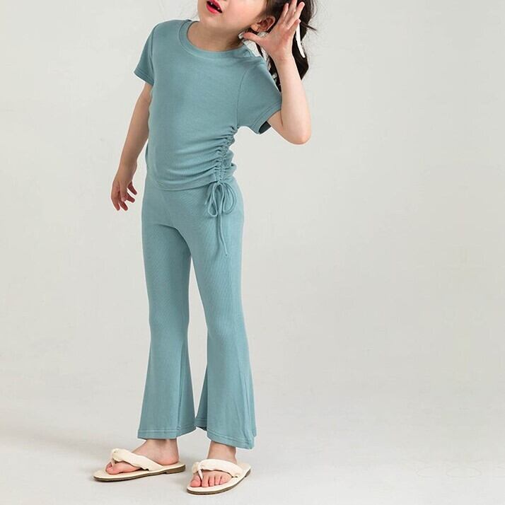 kids | 子供服 ベビー服 KIDS セットアップ 半袖 フレアパンツ 無地 クルーネック サイドギャザー
