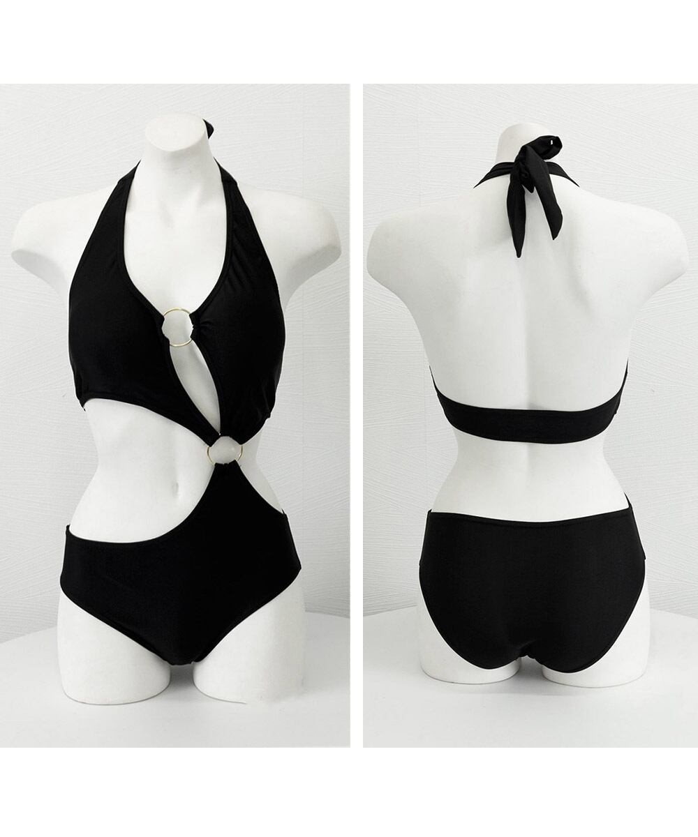 swimsuit | 水着 ワンピース ハイウエスト アシメトリー ホルターネック リング繋ぎ ナイトプール 韓国 セクシー 海 リゾート