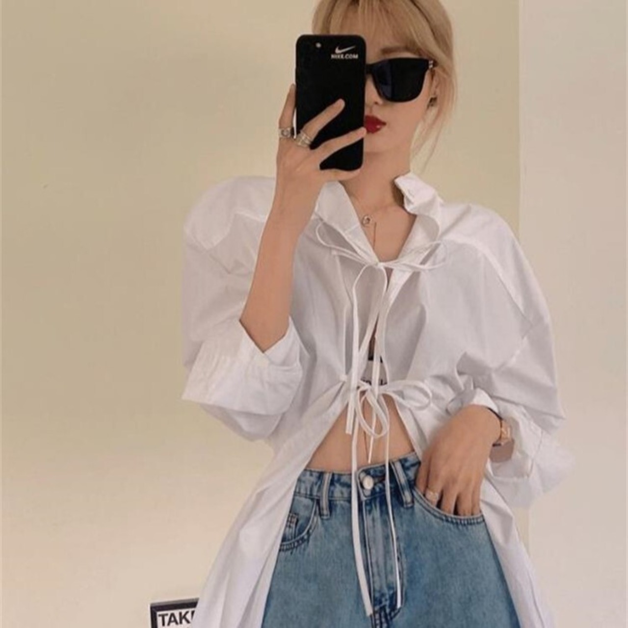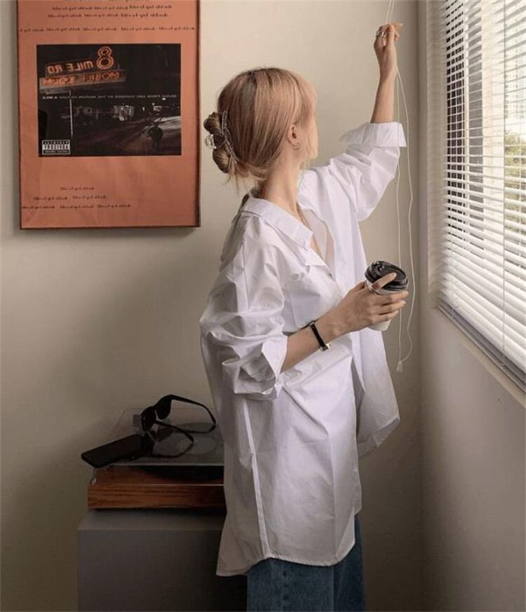 tops | シャツ トップス ブラウス 襟付き ルーズシルエット 長袖 バックオープン トレンド