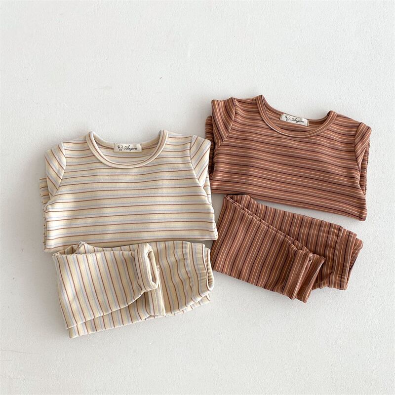 kids | キッズ 子供服 ベビー服 セットアップ AW マルチボーダー 長袖 長ズボン ウエストゴム 伸縮性