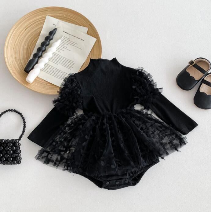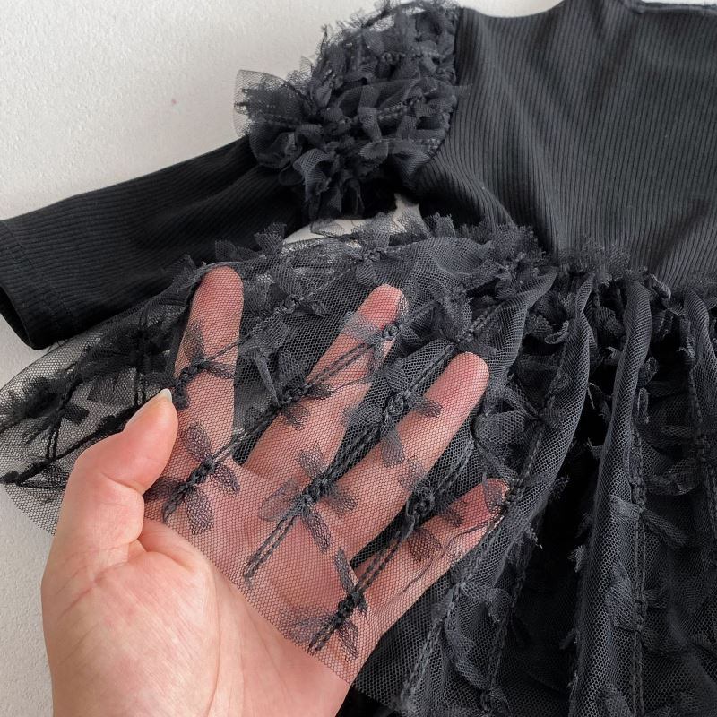kids | 子供服 ベビー服 長袖 オールイワン AW チュール ショルダーデザイン ワンピース風