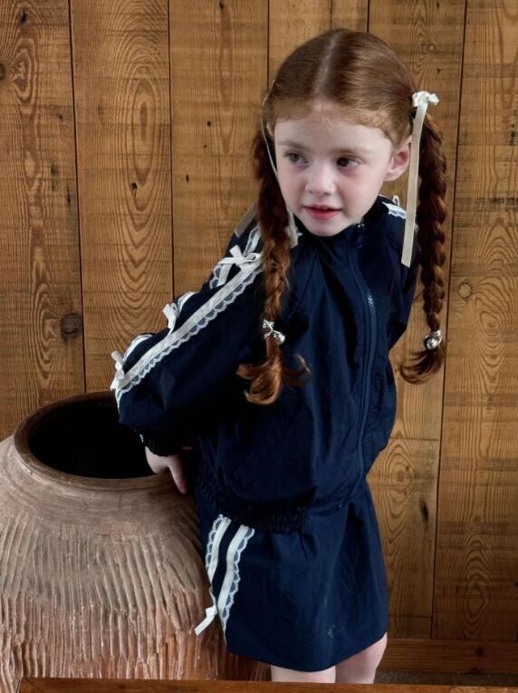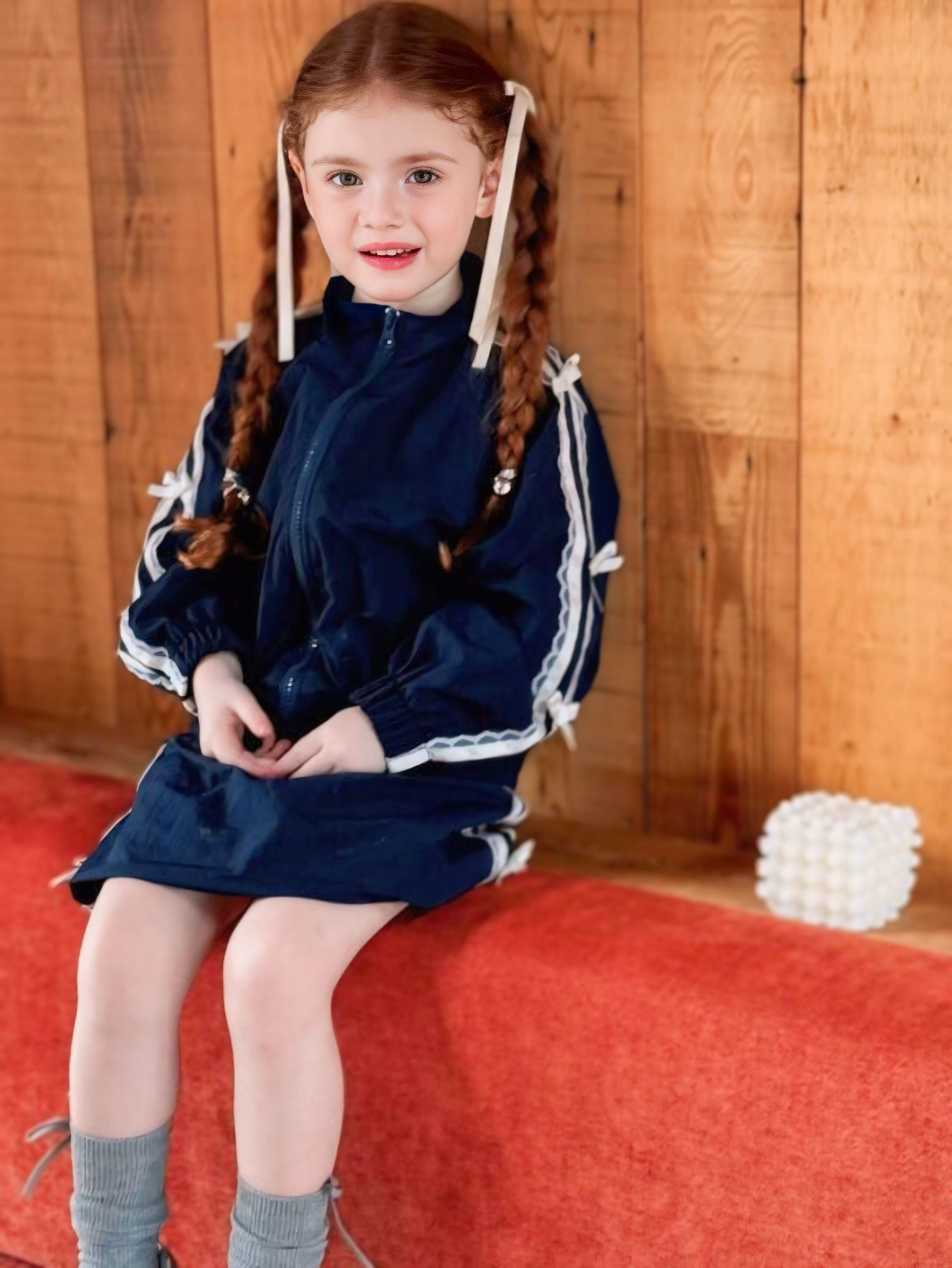 Anela | 子供服 KIDS セットアップ サイドライン リボン ジップアップ リラックススタイル 台形スカート ジャージ
