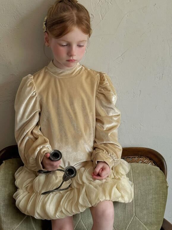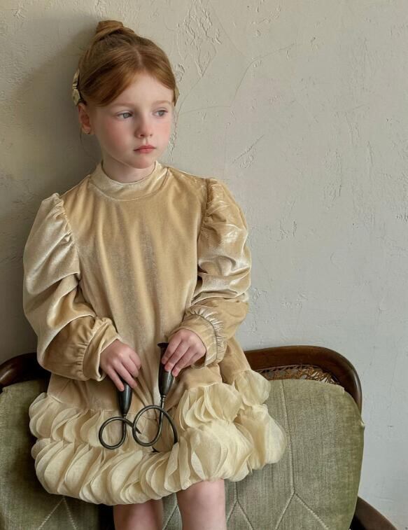 Anela | 子供服 KIDS ベロア ワンピース ハイネック 裾ボリューム Aライン 高級感