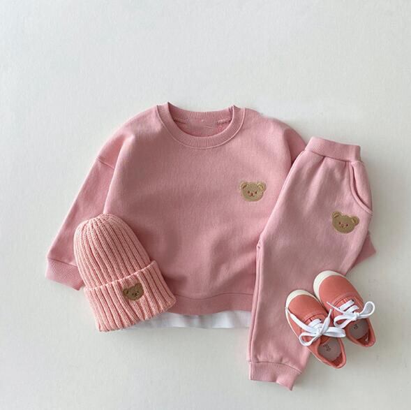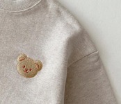 可愛らしいくまさんの刺繍が施された子供服のセットアップ。ユニセックスで使えるデザインなので、男の子も女の子もお揃いで着ることができます。ゆったりとしたスウェット素材で、動きやすさもバツグンです。