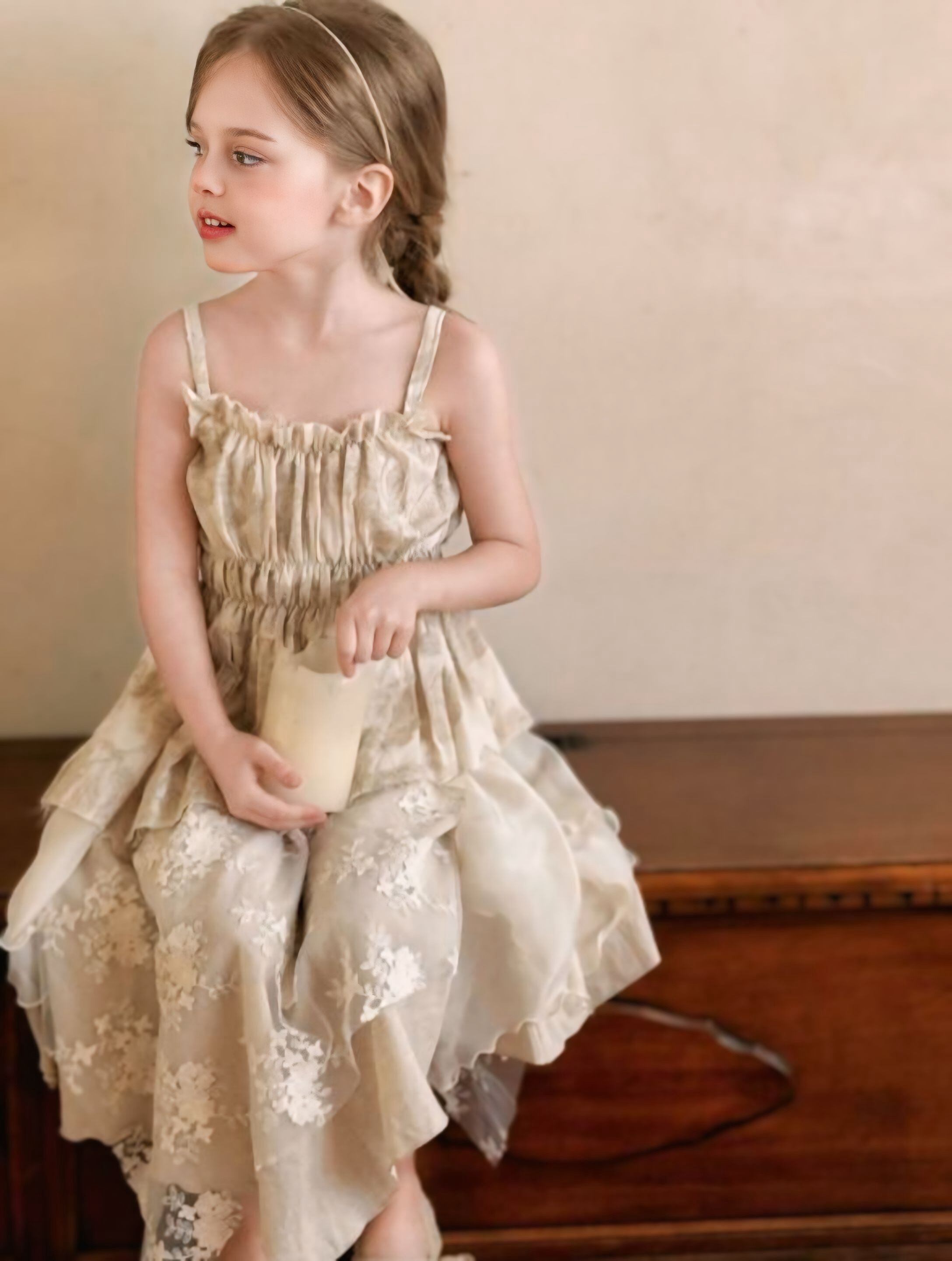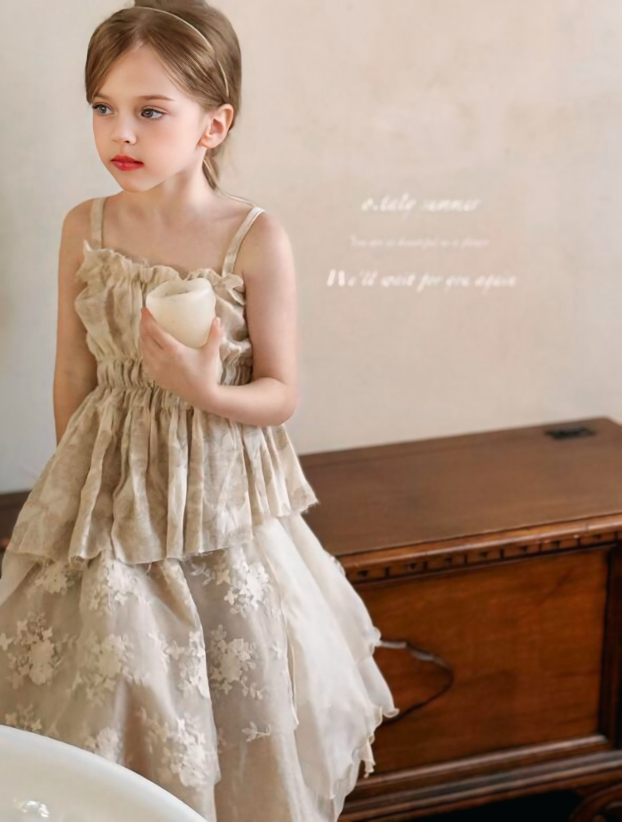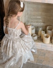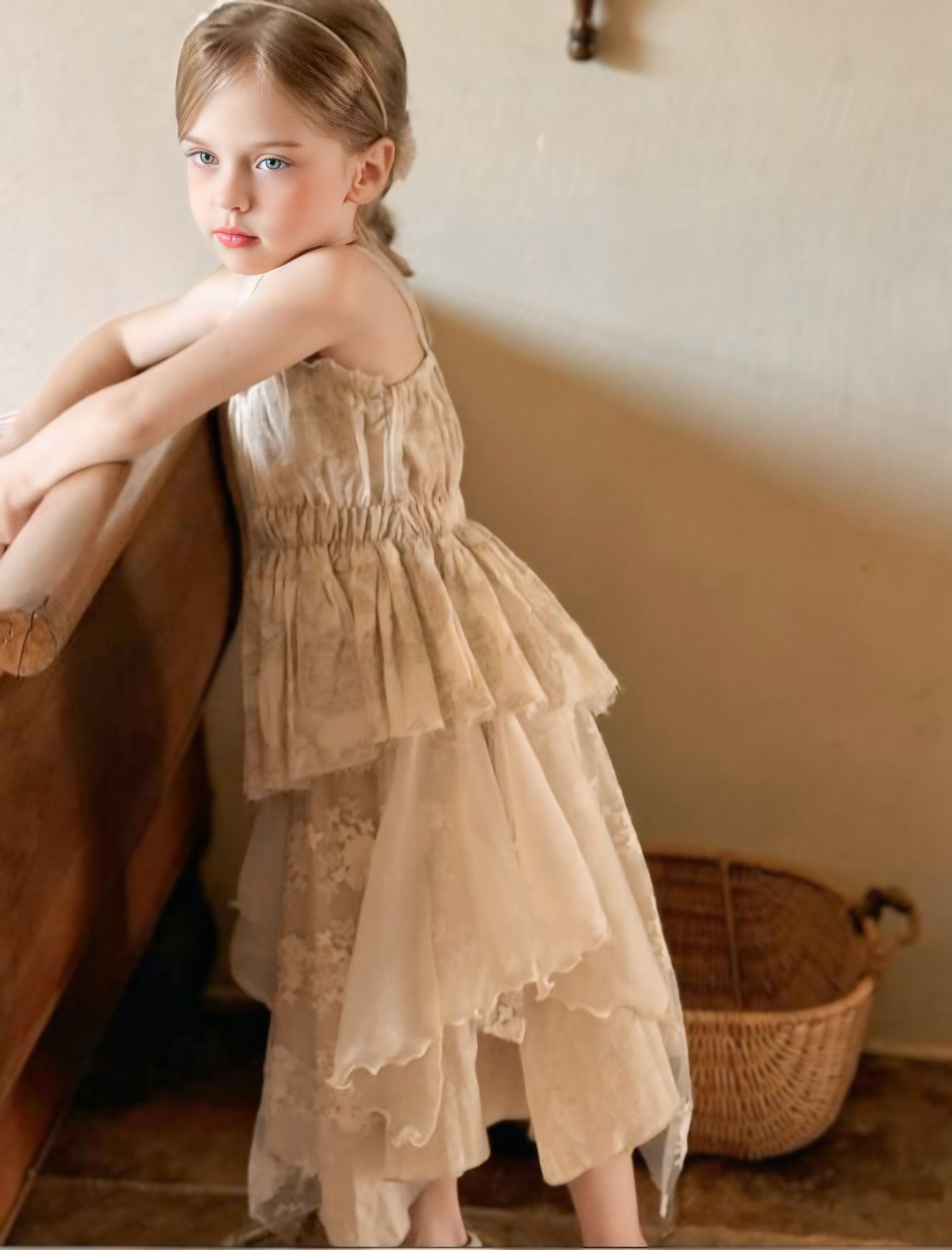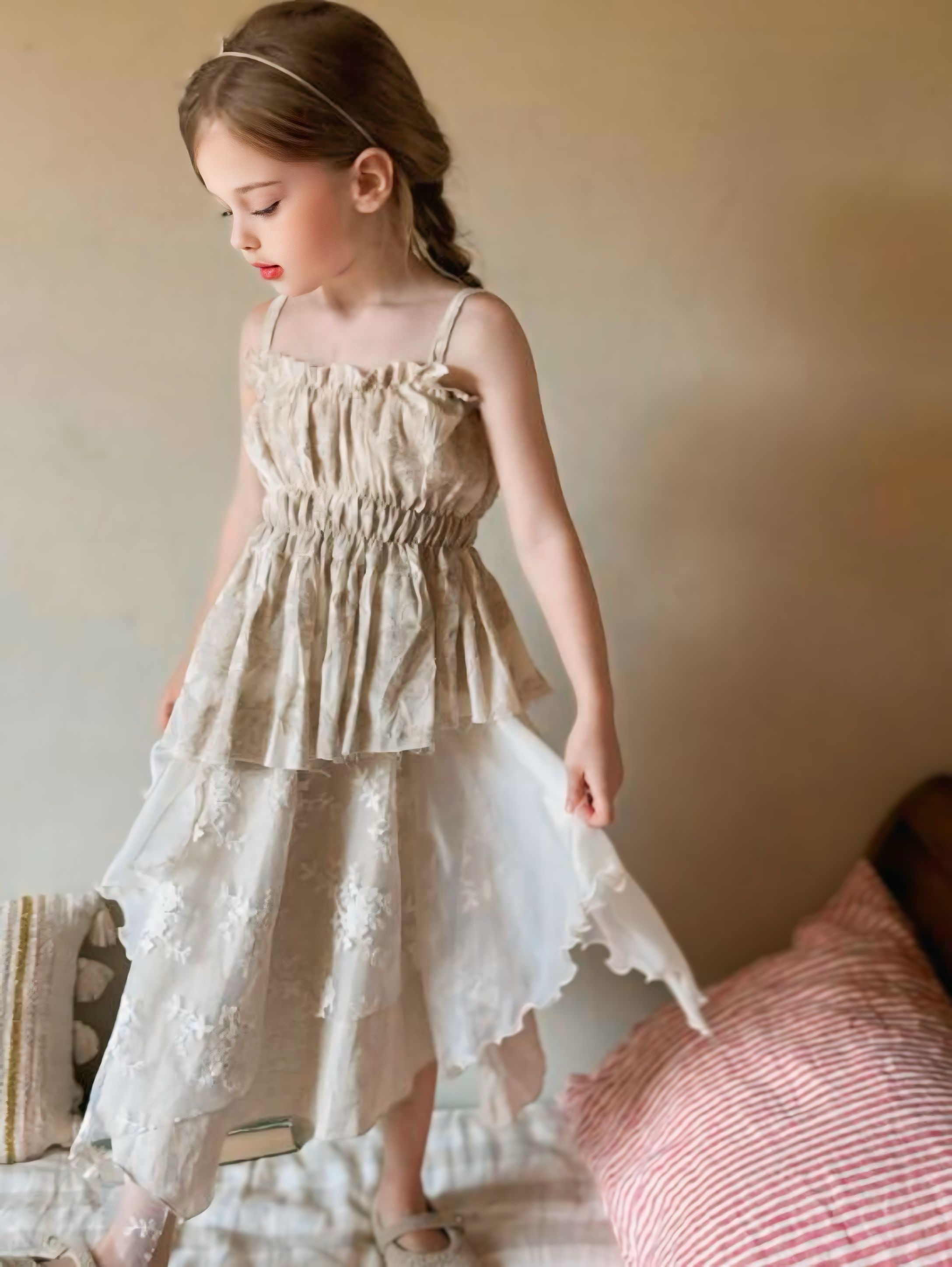 Anela | 子供服 キッズ セットアップ フェミニン キャミソールトップス アシメトリー レース フレアスカート 2点セット