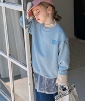 Anela | 子供服 キッズ トレーナー 裏起毛 トップス 長袖 羽付き パステルブルー シンプル デザイン