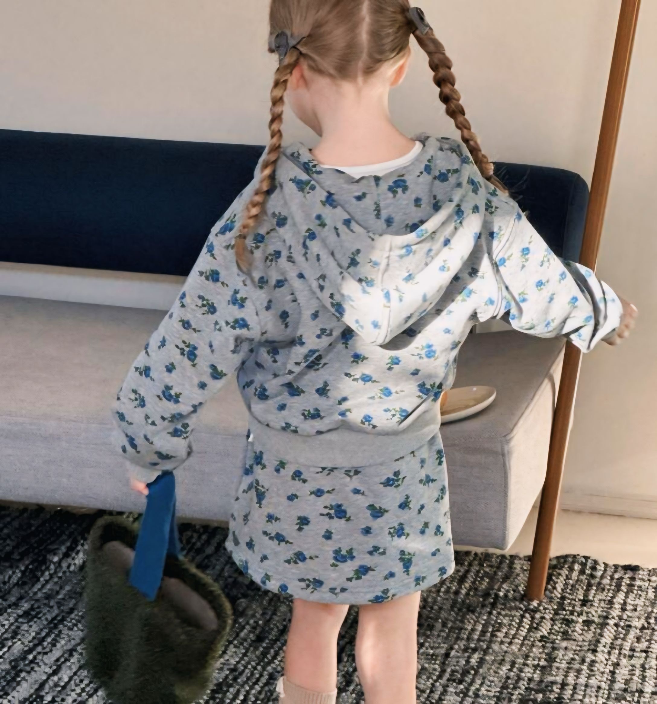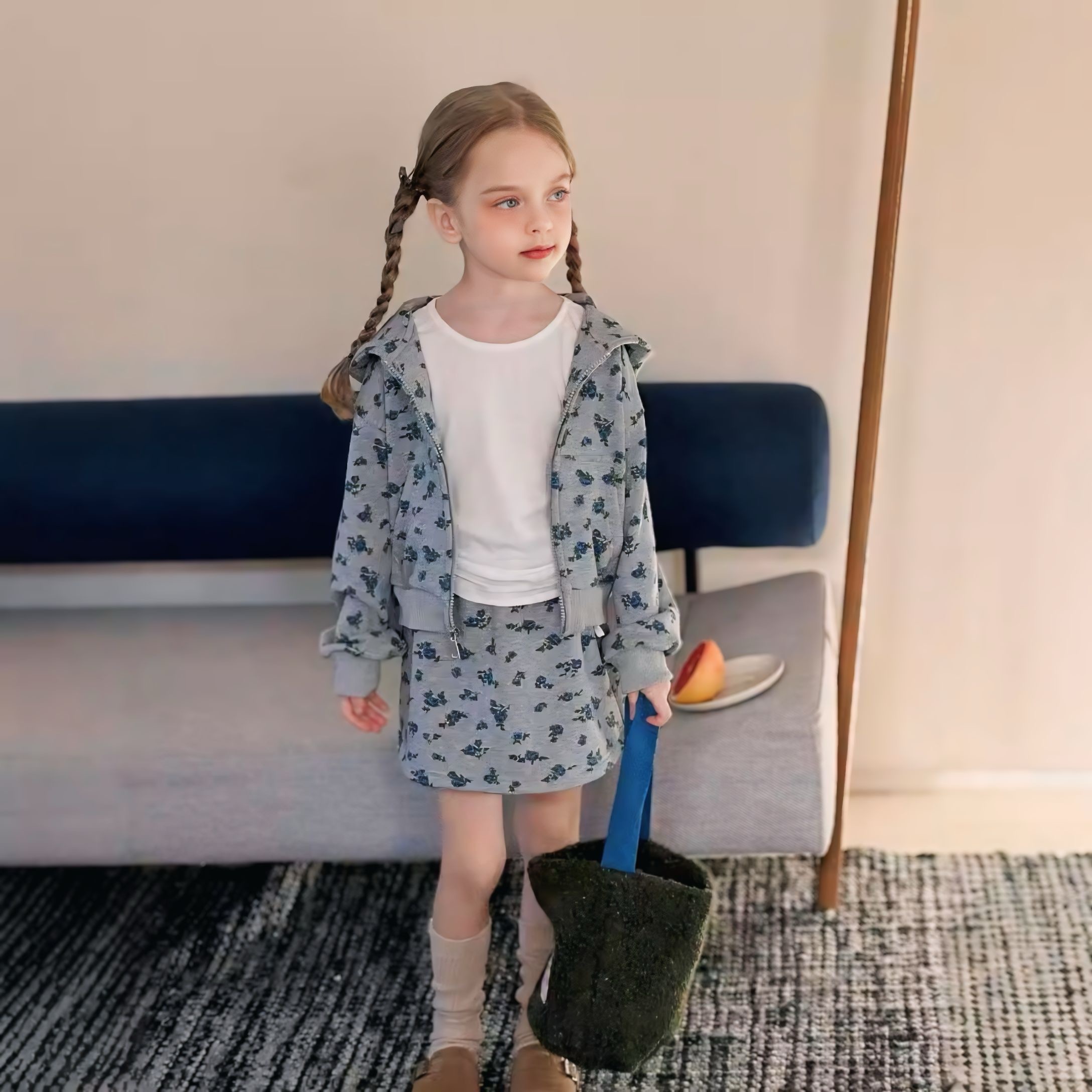 Anelaのセットアップは、カジュアルなスタイリングを瞬時に叶えるアイテム。フード付きのパーカーとミニ丈のタイトスカートの2点セットは、おしゃれなお子様にピッタリ。