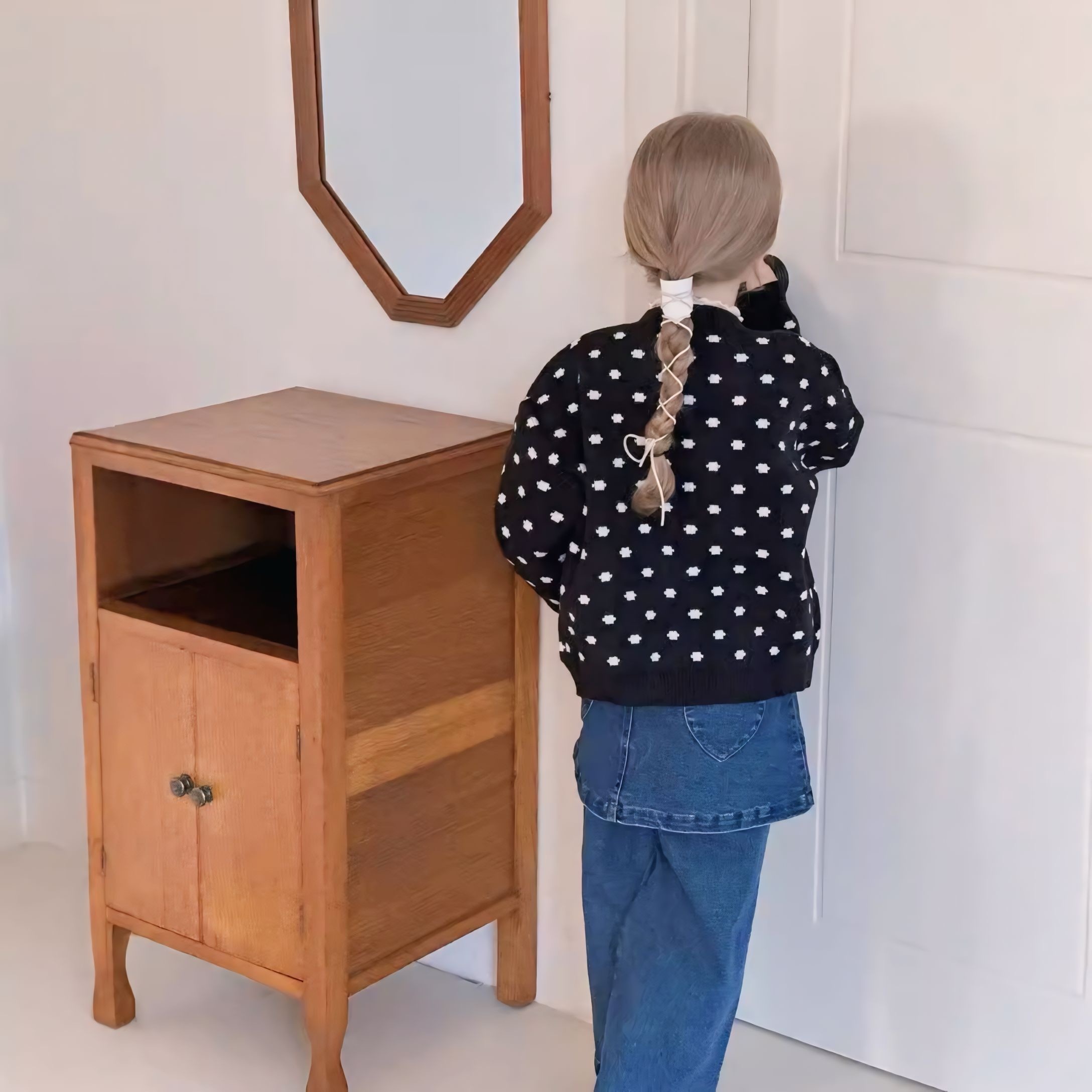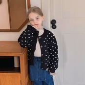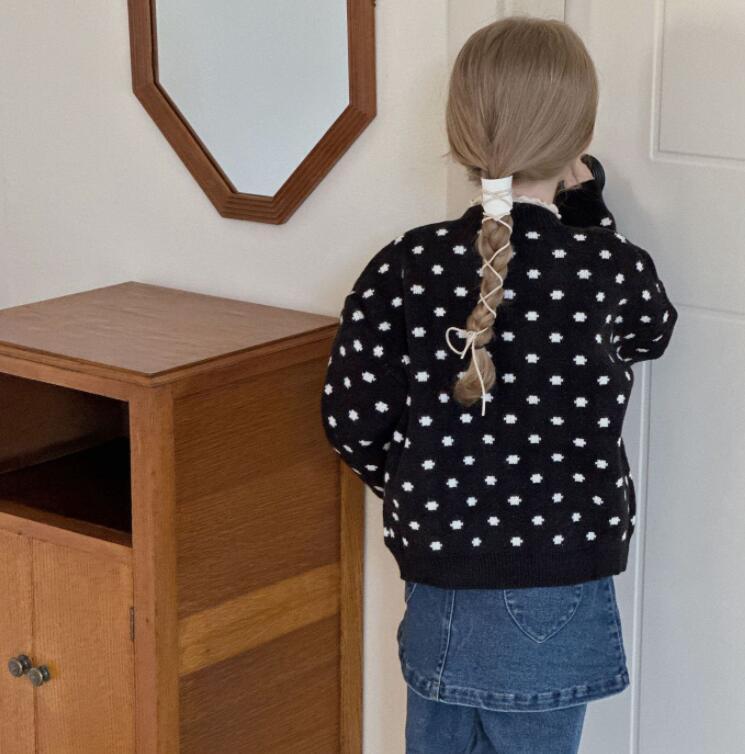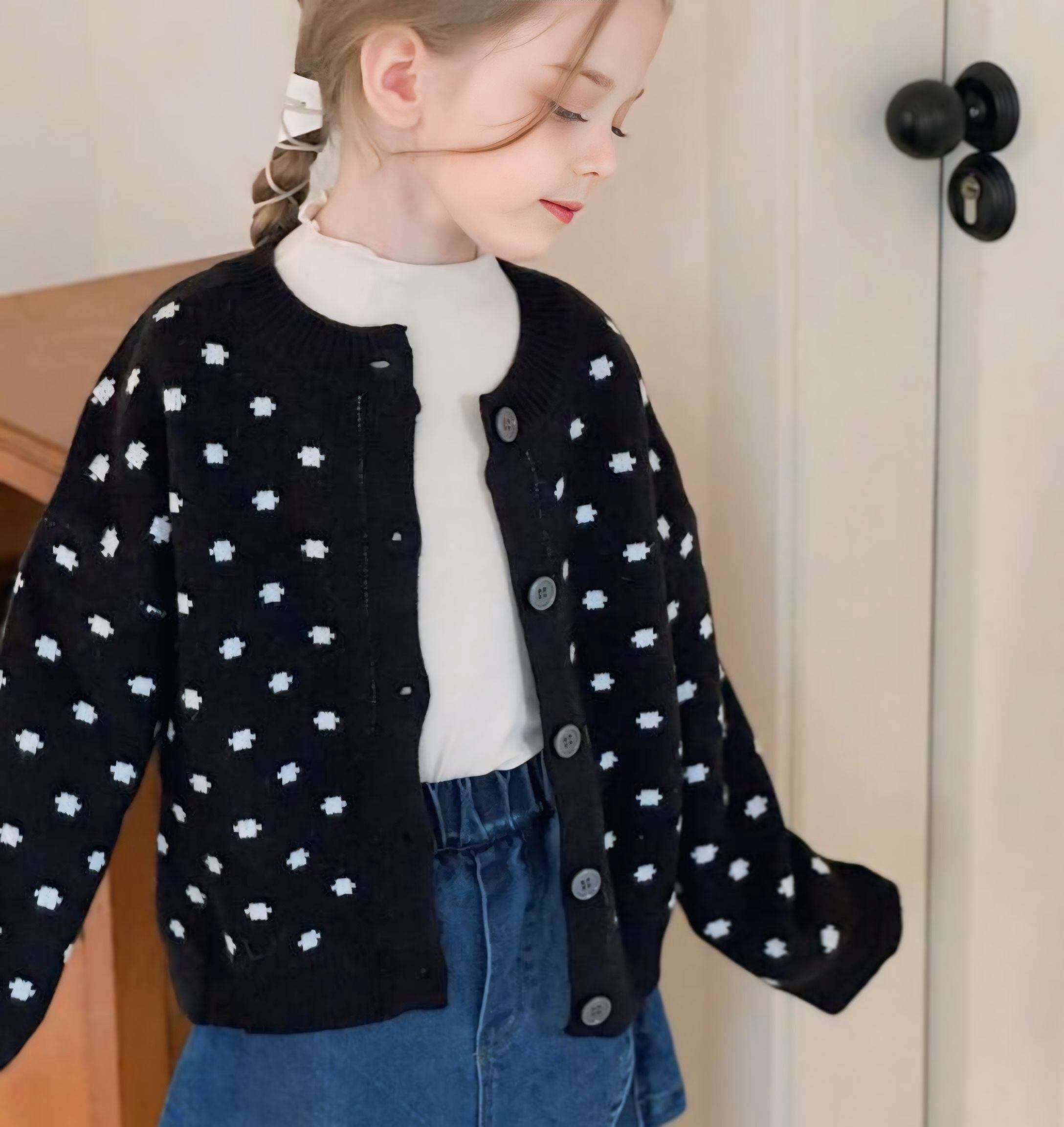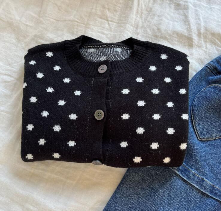Anela | 子供服 KIDS カーディガン ドット柄 長袖 フラワーモチーフ ニット AW 羽織り