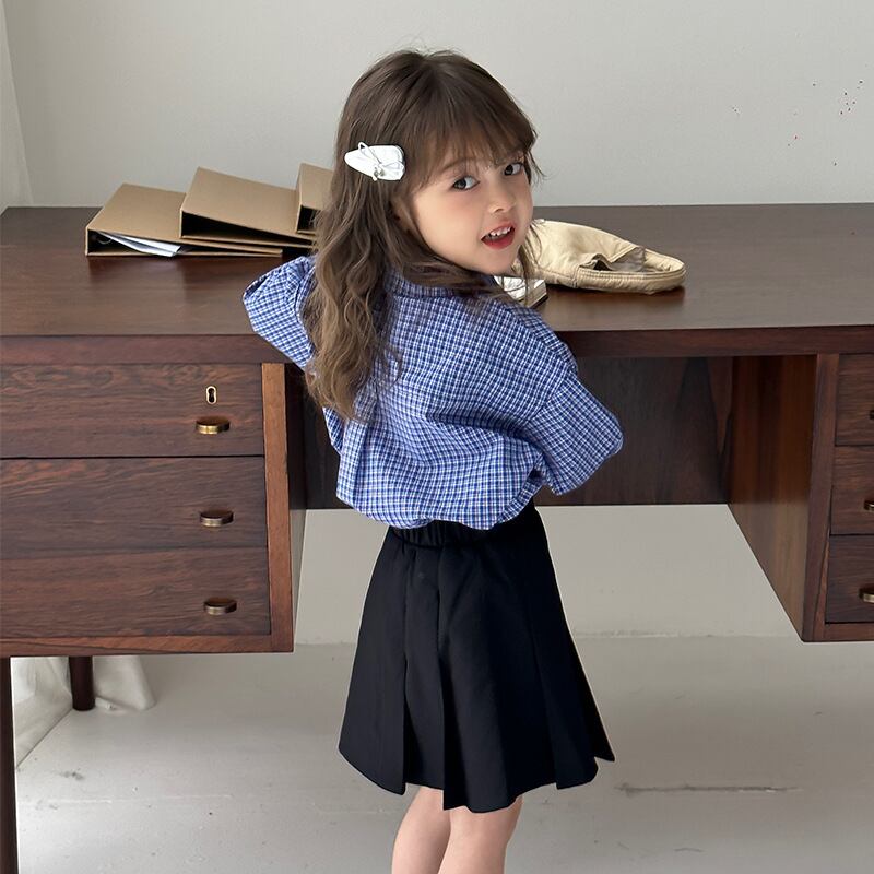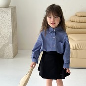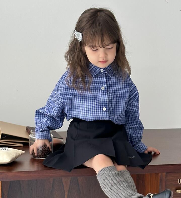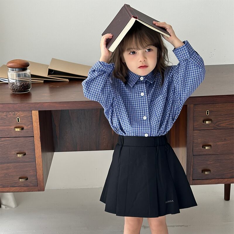 kids | 子供服 トップス チェックシャツ 襟付き シンプル ルーズシルエット ブルーシャツ