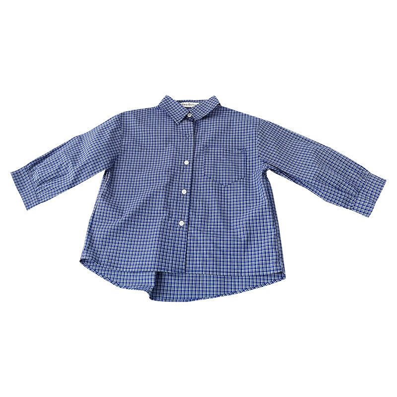 シンプルで使いやすいチェックシャツ。子供服のトップスとしてピッタリなこのシャツは、襟付きでルーズなシルエットが特徴です。爽やかなブルーの色味が、お子様の明るいイメージを引き立てます。