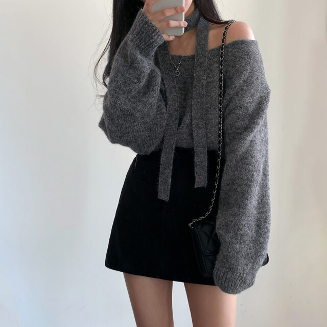 ボウタイデザインがキュートで、Vネックとドロップショルダーのゆったりシルエットが魅力のニットです。一枚でも存在感がありますが、ジャケットやコートとの相性も抜群。様々なシーンに活躍してくれること間違いなしです。