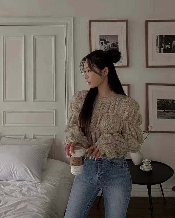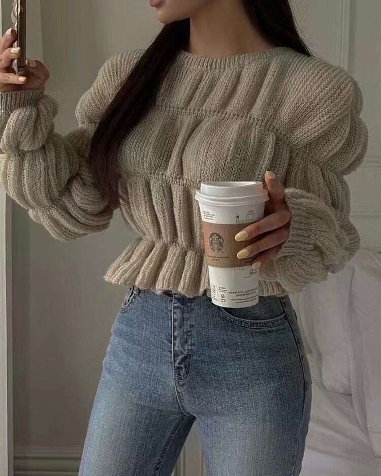 tops | トップス 長袖 シャーディング ラウンドネック ロングスリーブ ニット 秋冬