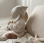 可愛らしいうさ耳デザインが特徴のニットロンパース。赤ちゃん服として最適なニット素材で、ふんわりとした肌触りでお子様のお肌をやさしく包みます。オールインワンなので着脱も簡単で、おむつ替えもスムーズに行えます。色は明るいパステルトーンで、お子様のかわいらしさを引き立てます。