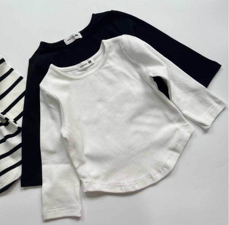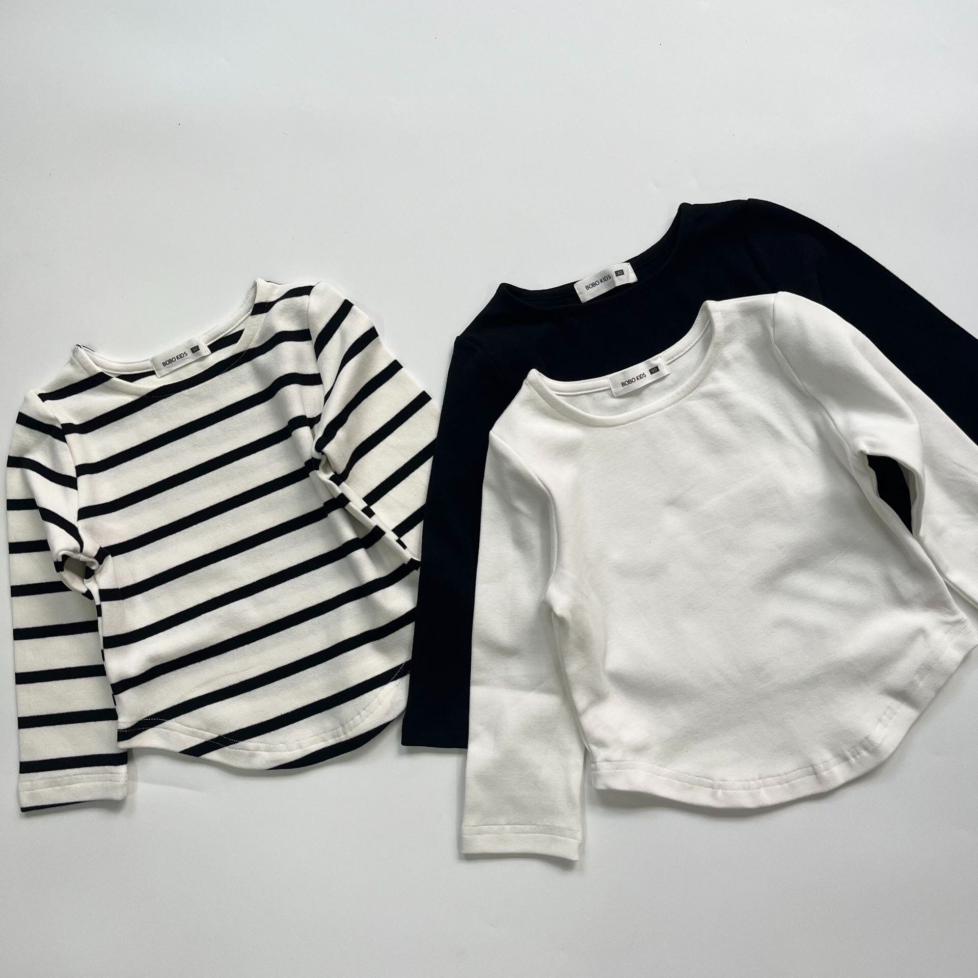 子供服のベーシックアイテムとして欠かせないロングTシャツ。シンプルで使いやすいデザインなので、お子様のカジュアルコーディネートに最適です。無地とボーダーの3種類から選べるので、お好みやお子様の個性に合わせてお選びいただけます。