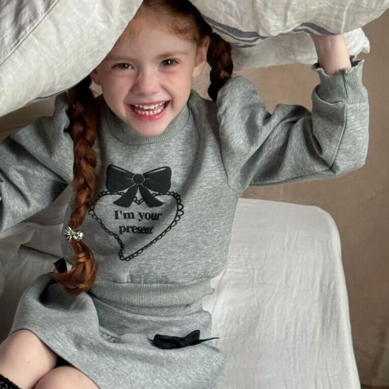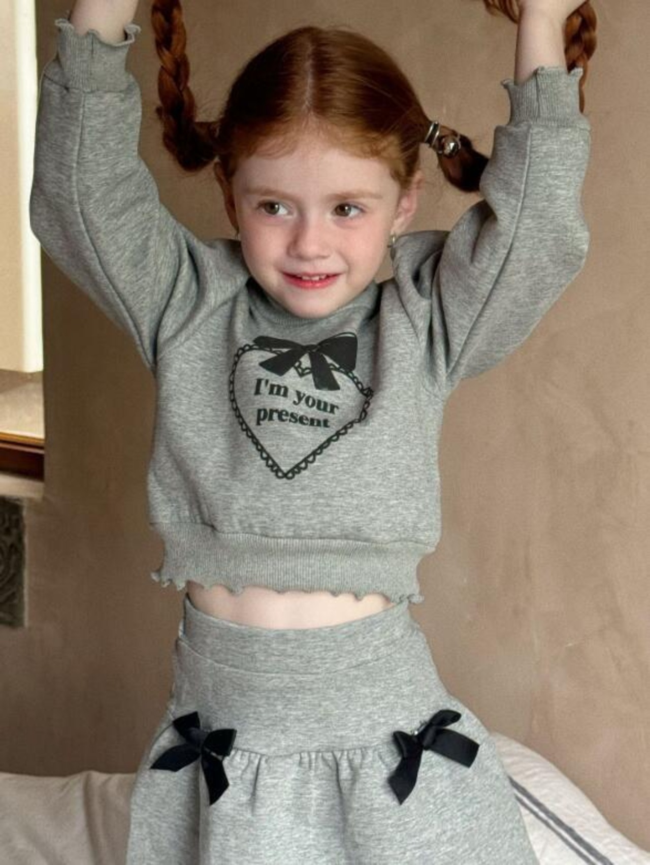 Anela | 子供服 KIDS セットアップ リボン スウェット 台形スカート 長袖 パフスリーブ ミニスカート