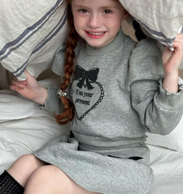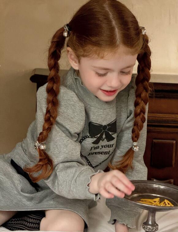 リボンがポイントの可愛らしいデザインが特徴のセットアップ。スウェット地のトップスと台形スカートのセットで、子供らしい遊び心を引き立てます。トップスはパフスリーブで、スカートはミニ丈で女の子らしい印象に。お出かけやイベントなど、特別な日にぴったりの一着です。