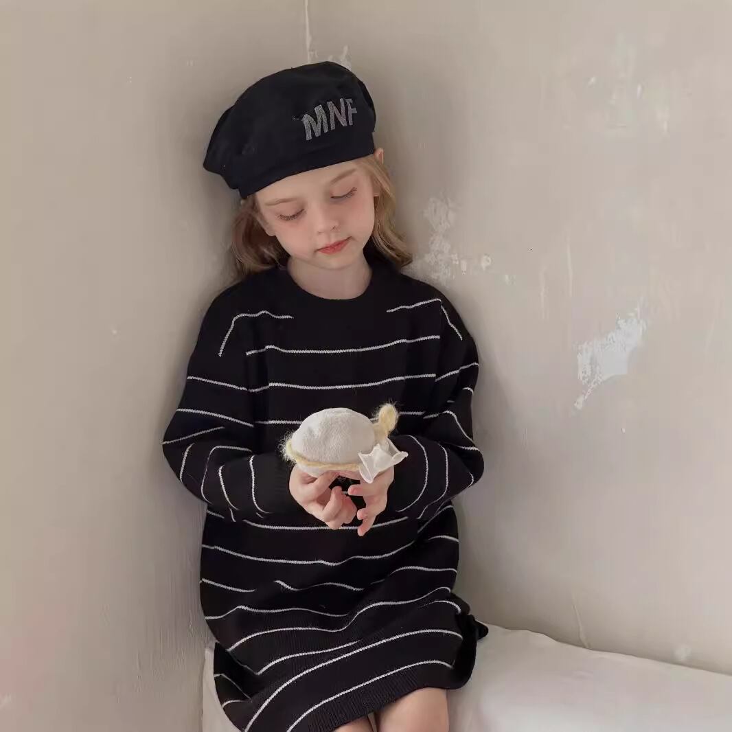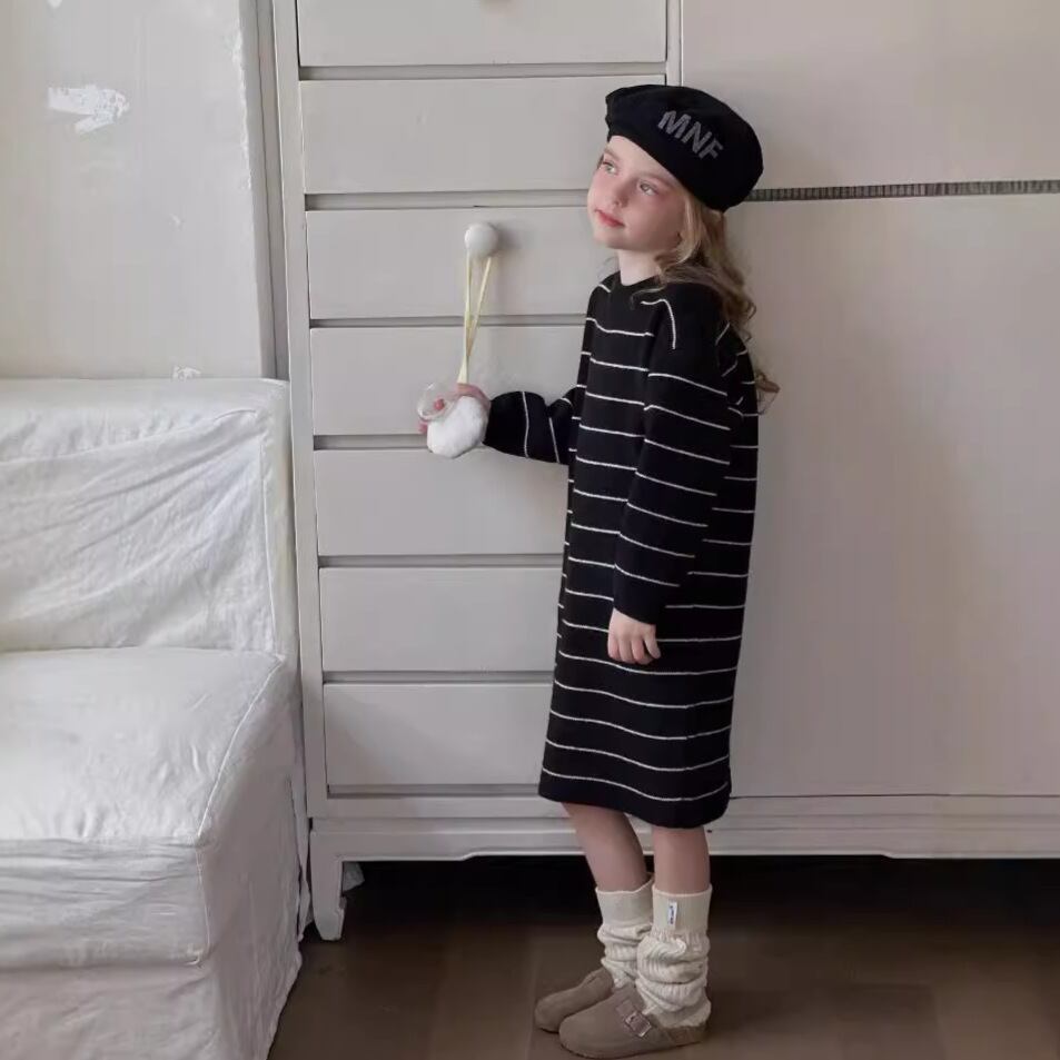 Anela | キッズ ベイビー ニットワンピース ボーダー カジュアル バックスリット クルーネック