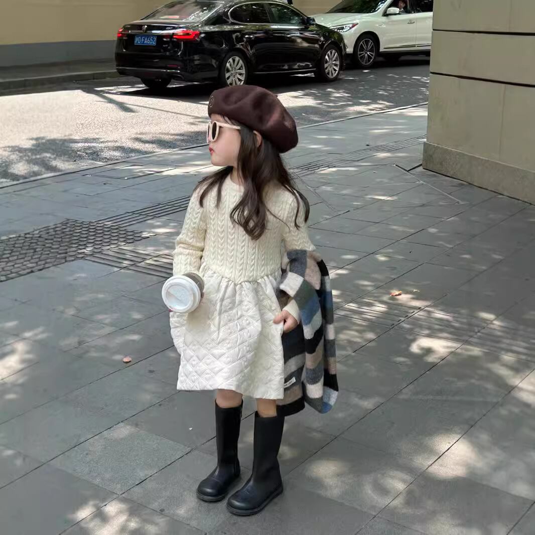 kids | 子供服 赤ちゃん服 フレアワンピース 長袖 ウエスト切り替え ニット キルティング