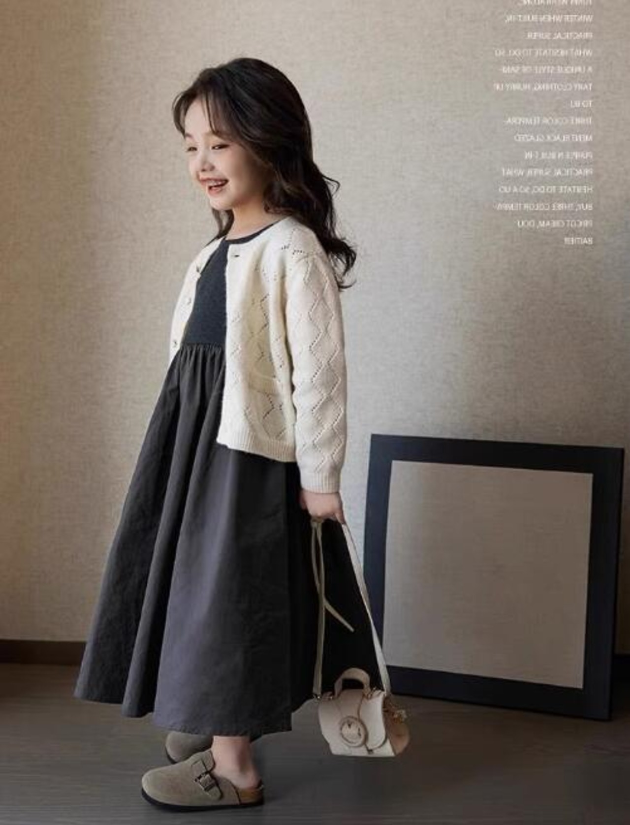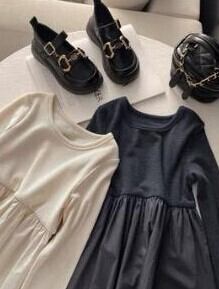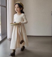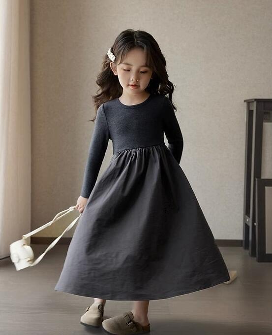 kids | 子供服 赤ちゃん服 ワンピース フレアワンピース 長袖 シンプル ウエスト切り替え 無地