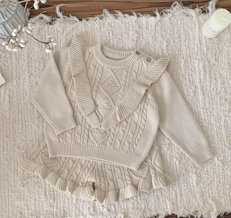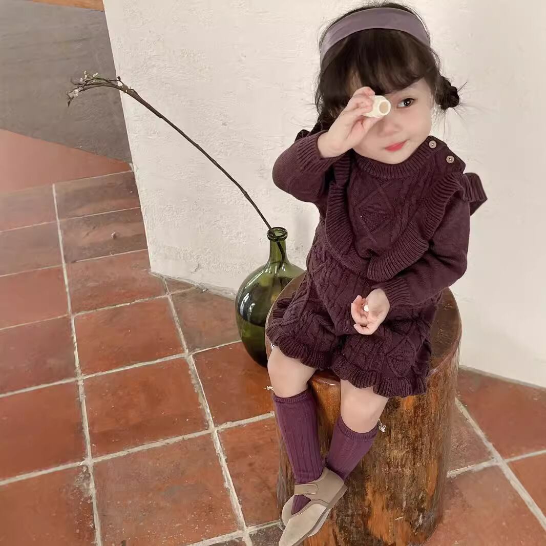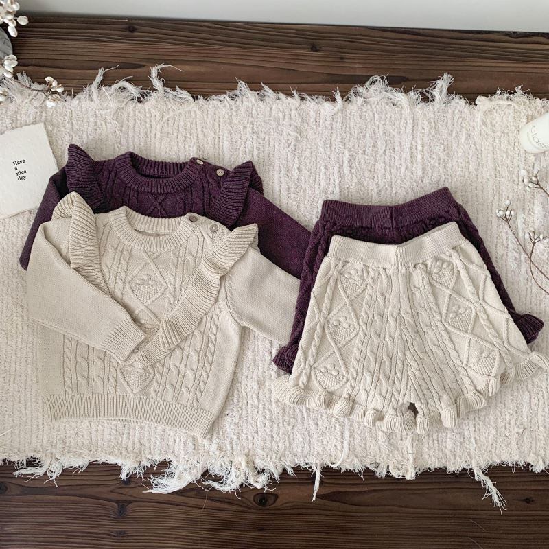 愛らしいショルダーフリルと裾フリルが特徴のケーブルニットセットアップ。赤ちゃんから幼児まで快適に着用できる柔らかな素材が、動きやすさとあたたかさを提供します。ショートパンツとのコンビネーションで、元気いっぱいのお子様にぴったり!おしゃれでありながらもカジュアルな印象で、日常使いや特別なお出かけシーンでも大活躍してくれる一着◎