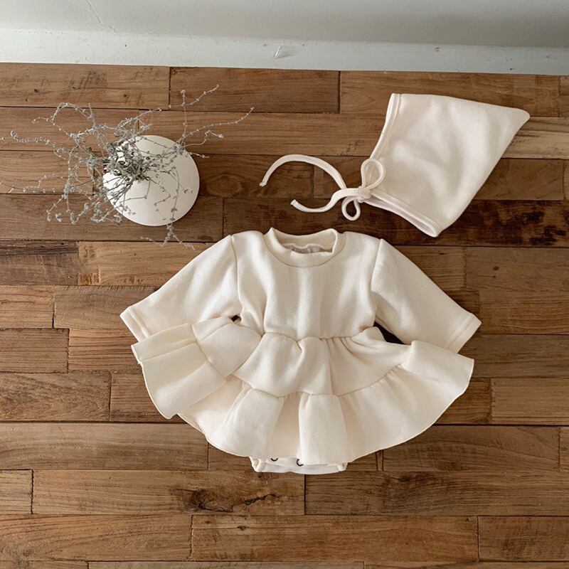 可愛らしいフレアデザインの帽子付きロンパース。裏起毛仕様で、寒い季節でもお子様を暖かく包み込みます。クリスマスにもぴったりなデザインで、おしゃれなスタイルを演出します。柔らかな素材感は赤ちゃんの肌にも配慮されており、一日中快適に過ごせます。